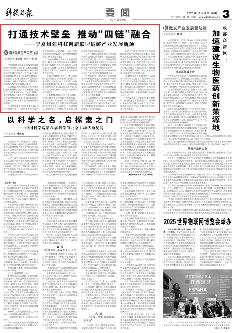 “为推动科技创新和产业创新深度融合、提升企业科技创新水平、增强园区竞争力,2024年9月我们联合工业和信息化厅,组建了自治区产业科技创新联盟。”宁夏科技厅高新技术处处长杨芳告诉记者。