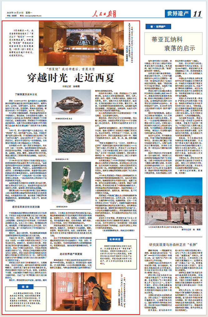 正如相关专家所说,西夏陵实证了公元11至13世纪我国北方农牧交错地带多民族融合、多元文化交流,为中华文明多元一体格局和统一多民族国家形成过程提供了特殊物证,在世界文明史上具有不可替代的重要地位。(记者 赵晓霞)