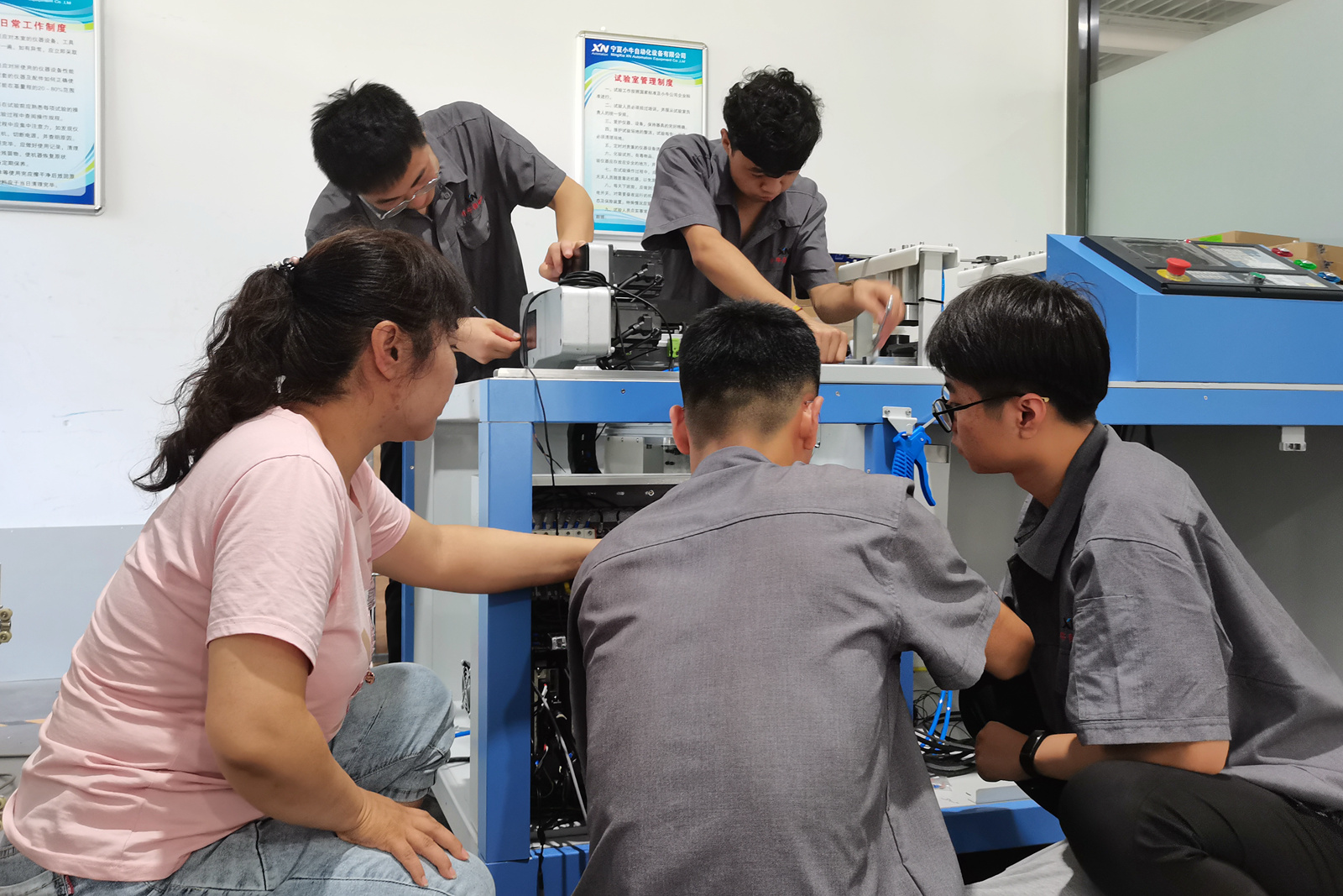 团队负责人张彩芬介绍,教学中所选择的每个项目都是来自企业的综合项目,涵盖了机械、电气控制、人机交互等知识和技能,通过项目的学习和实践,培养学生服务产业的综合能力,不断优化五维融通模块化课程体系。教师团队广泛开展项目化教学,参与校企合作研发项目,团队教师教学及科研能力稳步提升,获批国家级教师教学创新团队1个,立项国家级教学创新团队课题1项,获批自治区级教师教学创新团队2个,校级教学创新团队2个。成立了特色课程建设团队6个,创新创业教育团队1个、1+X证书培训团队5个,取得国家级教学能力大赛一、二、三等奖各1项,省级教学能力大赛奖7项。