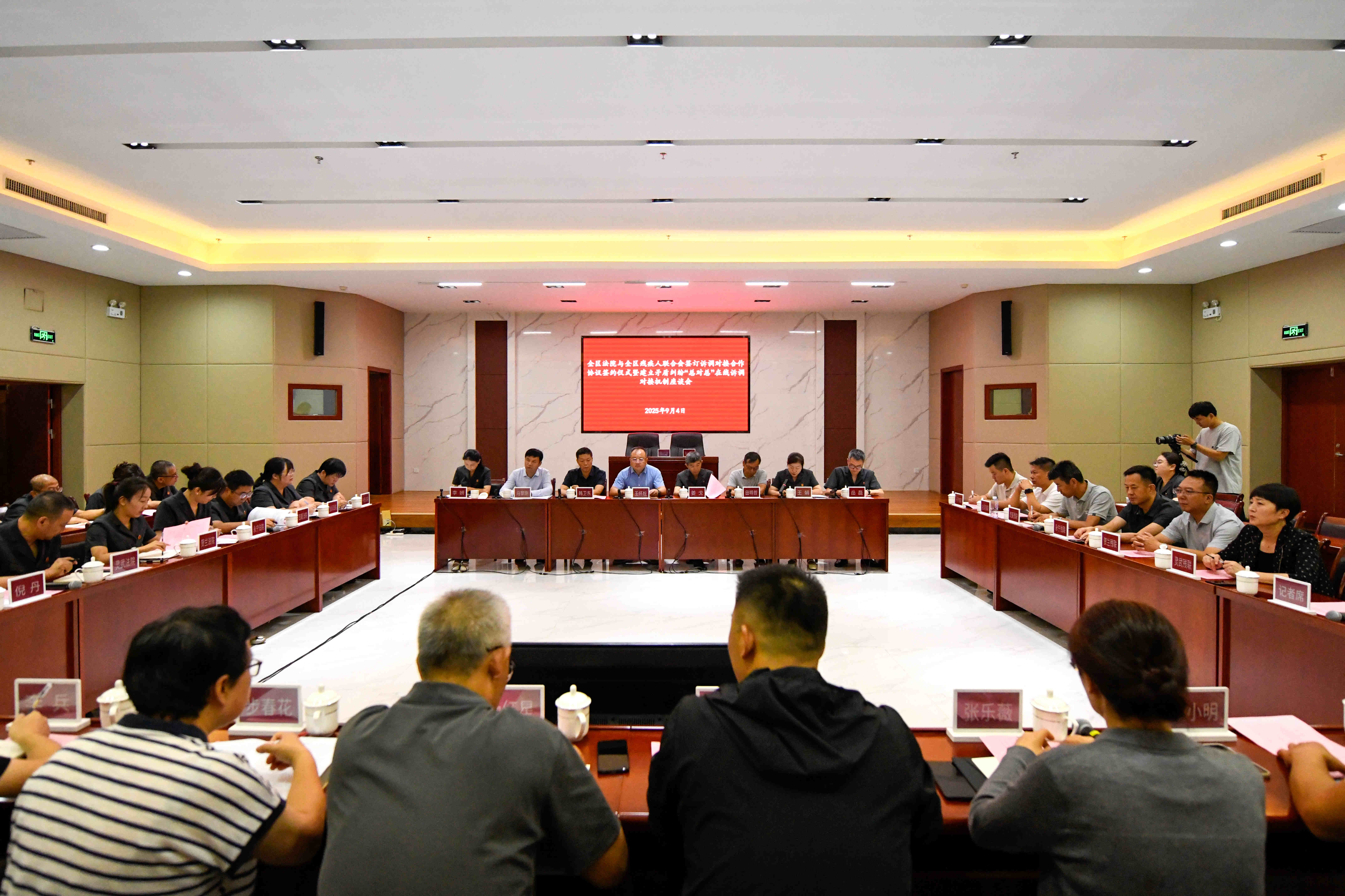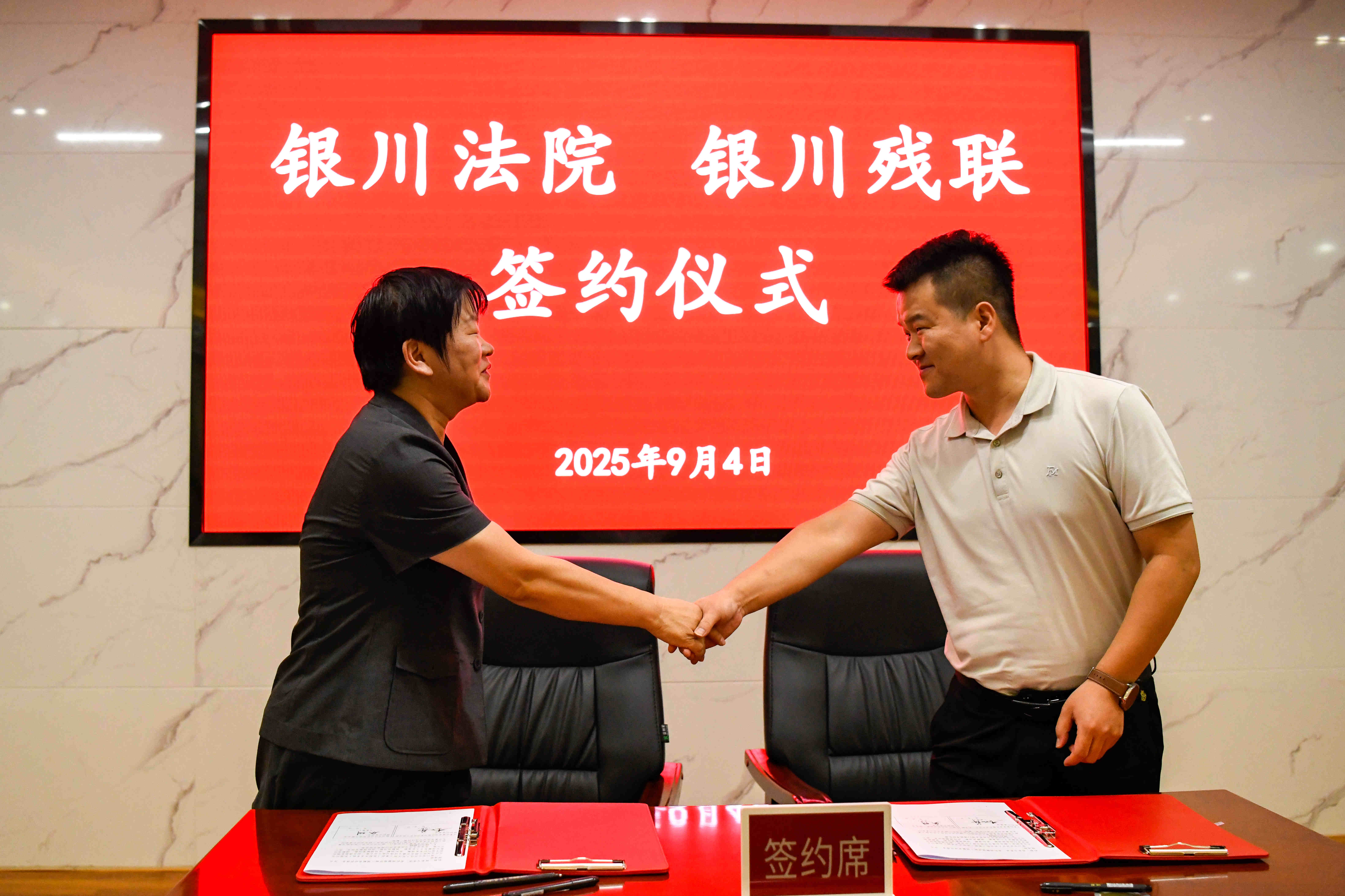 宁夏新闻网讯(记者 金文阳 文/图)9月4日,宁夏回族自治区残疾人联合会与自治区高级人民法院,在银川市中级人民法院联合举行诉调对接合作协议签约仪式暨建立矛盾纠纷“总对总”在线诉调对接机制座谈会。此次签约标志着宁夏全区正式建立起一套高效、富有人文关怀的涉残疾人纠纷多元化解机制,旨在更全面、更有效地保障残疾人合法权益。