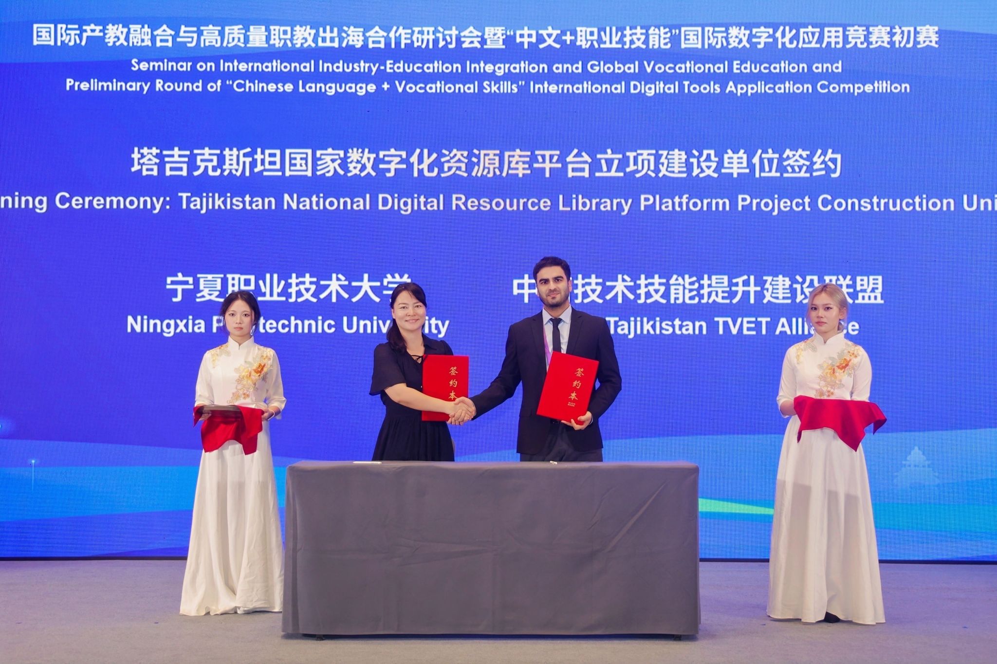 宁夏新闻网讯(记者 胡俊)近日,2025年亚洲职业技术教育与培训暨国际产教融合与高质量职教出海合作研讨会召开。宁夏职业技术大学在会上荣获两项重要国际合作成果,基于学校国际合作实践总结形成的案例《以数字教材为桥,筑“职教出海”之路》,荣获“2025年职业教育国际合作与传播优秀案例”;同时,学校与中塔技术技能提升建设联盟成功签约,成为塔吉克斯坦国家数字化资源库平台立项建设单位。