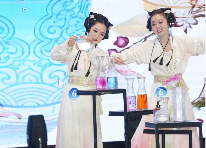 决赛环节设团队介绍、自选实验展示和评委问答等环节。在自选实验展示过程中,选手们“脑洞大开”,打破传统科普形式局限,巧妙融合非遗技艺、文旅特色、直播互动、历史演绎等多元元素,将日常生活中看似神奇的科学现象直观呈现,同时深入浅出地解读背后蕴含的物理、化学等科学原理,充分展现了宁夏科普工作者的创新活力与专业风采。