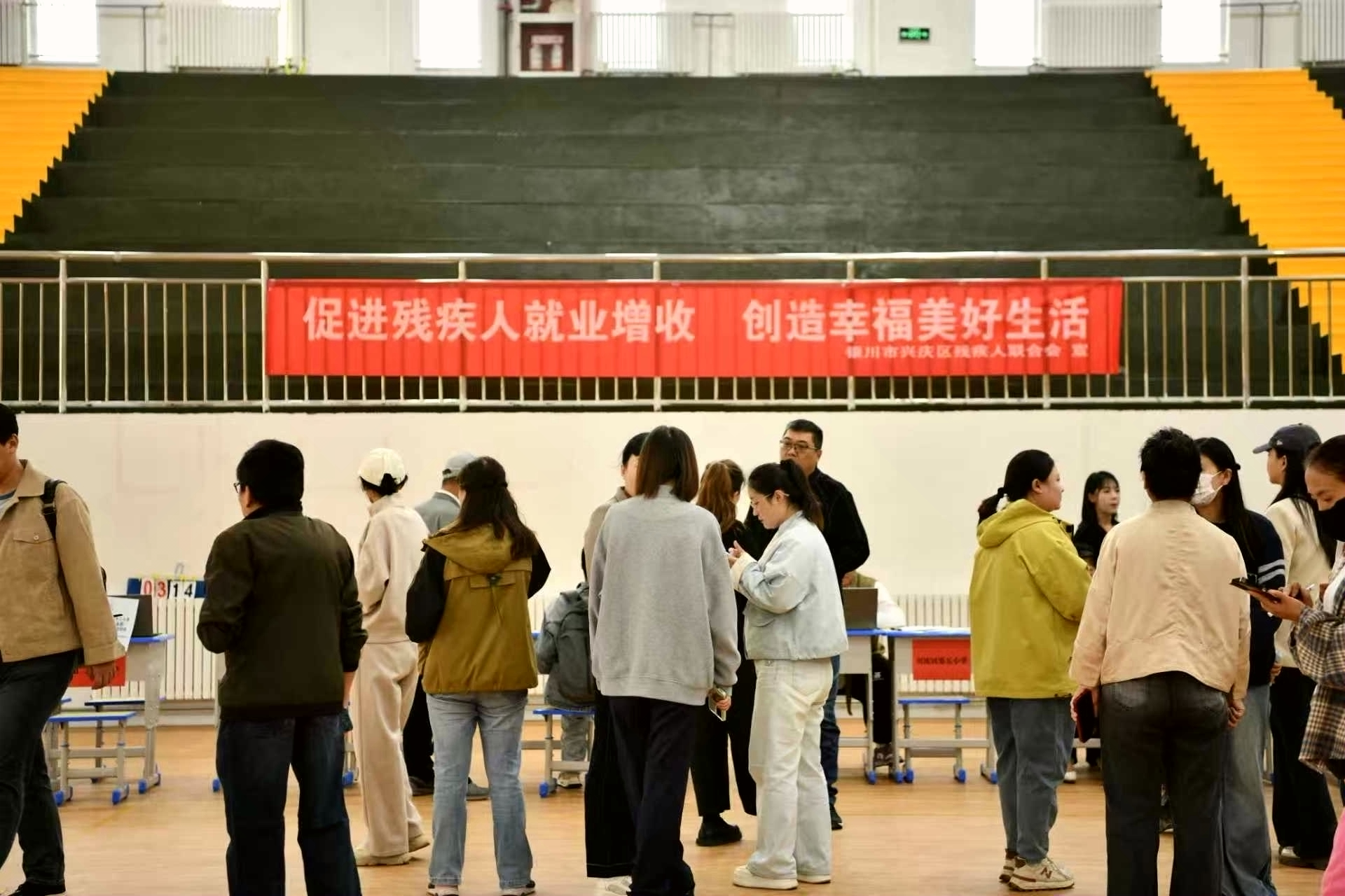 宁夏新闻网讯(记者 金文阳 文/图)9月25日,银川市兴庆区残疾人联合会首次举办残疾人专场招聘会。活动以“凝心聚力,‘职’为你来”为主题,在第三十一中学体育馆顺利开展。80余家机关事业单位、学校、医院及企业参会,现场设立招聘洽谈、政策咨询、职业指导三大功能区,为残疾人求职者提供全流程就业服务。