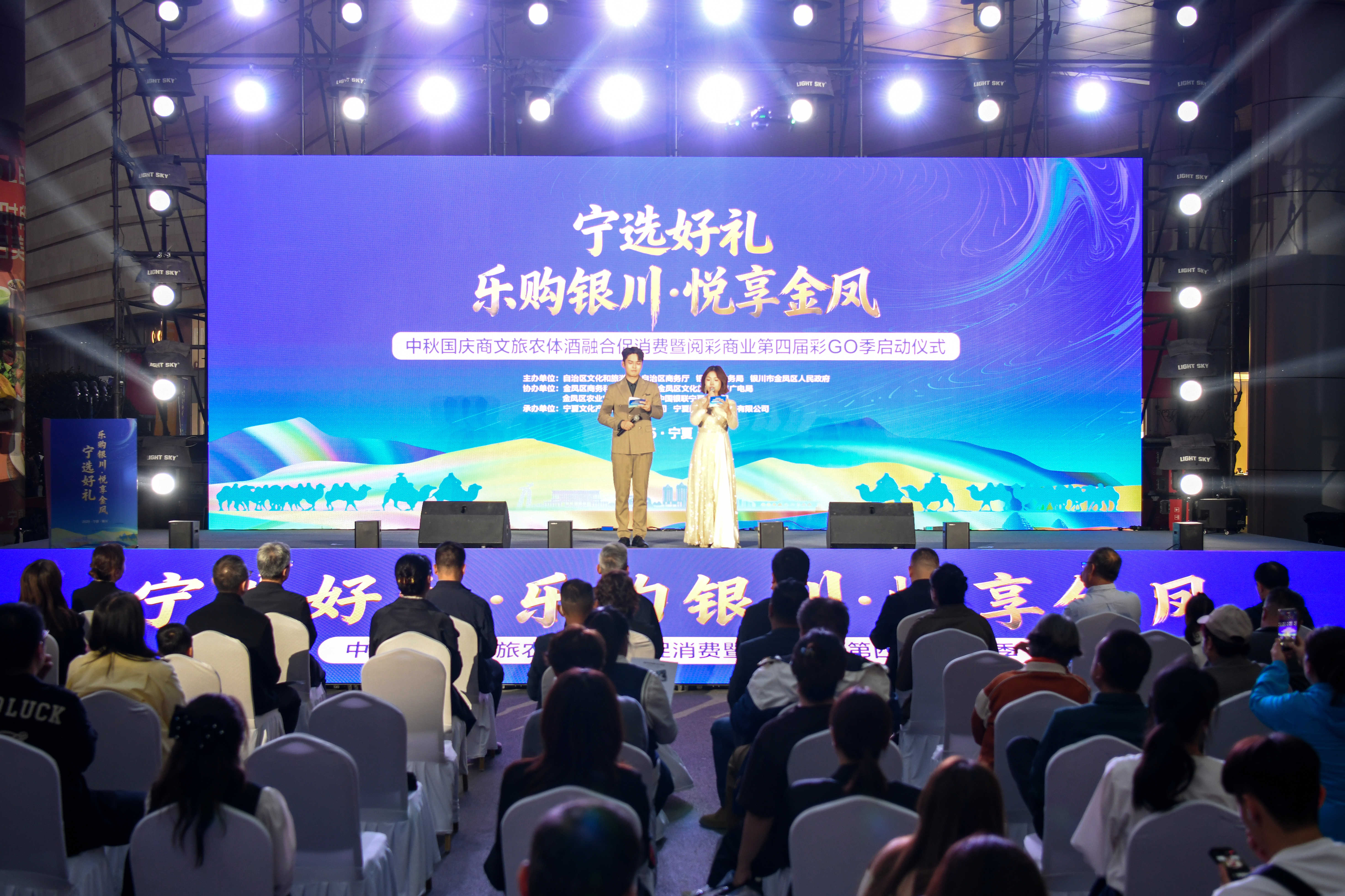 宁夏新闻网讯(记者 金文阳 文/图)9月26日,由银川市金凤区商务和投资促进局主办的“乐购银川·悦享金凤”中秋国庆商文旅农体酒融合促消费活动在阅彩城中街三叶广场启幕。活动聚焦“汽车惠民”“智享生活”“食在金凤”“夜宿佳境”四大主题,现场发布了系列深度融合的促消费活动和政策,旨在激发中秋、国庆双节消费活力。