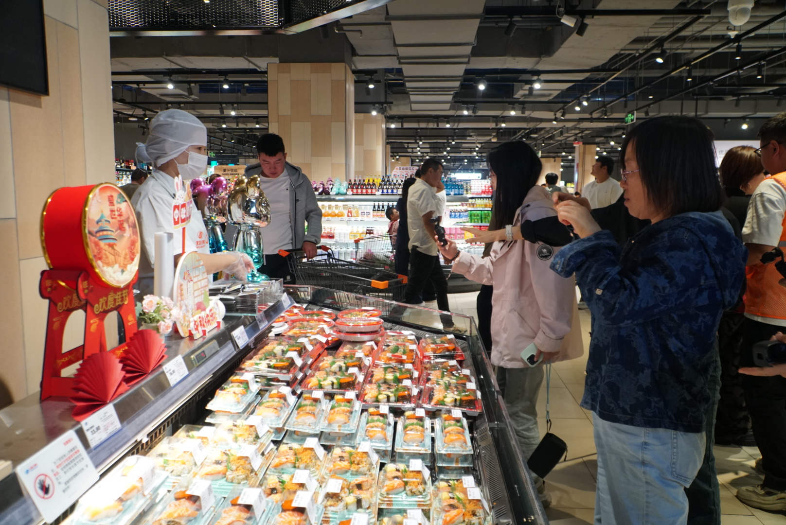 记者看到,除了生鲜,超市还大幅增加了进口食品、地方特产以及国庆主题的节日礼盒专区,充分满足了消费者十一假期走亲访友、家庭聚餐和休闲零食的多元化需求。