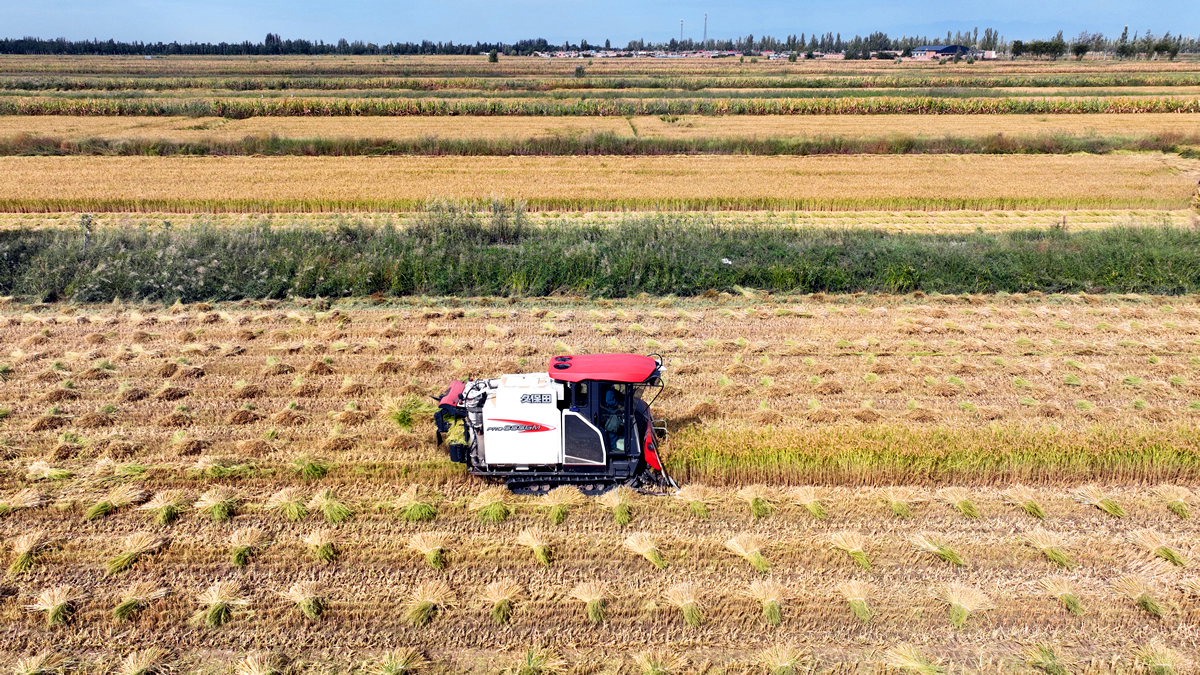 据悉,灵武市2025年紧紧围绕保障粮食安全,落实“藏粮于地、藏粮于技”战略,粮食生产呈现“面积、单产、总产”三稳向好态势。目前,全市水稻收获进度已达20%,预计于10月10日前可全面完成收割任务。经测产核算,全市6.51万亩水稻预测平均亩产达550公斤,总产量预计可达3.58万吨。(图片由灵武市委宣传部提供)