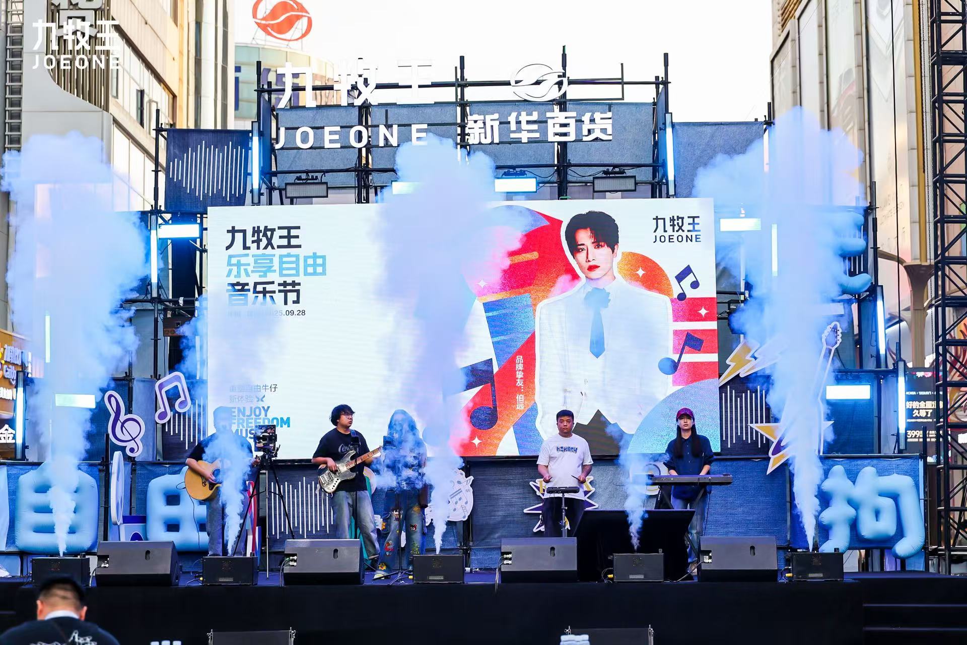 宁夏新闻网讯(记者 祁瀛涛)9月28日,银川鼓楼步行街新百中心热闹非凡,九牧王“乐享自由音乐节”在此激情上演,品牌挚友伯远惊喜空降,为银川市民带来了一场音乐与时尚的盛宴。