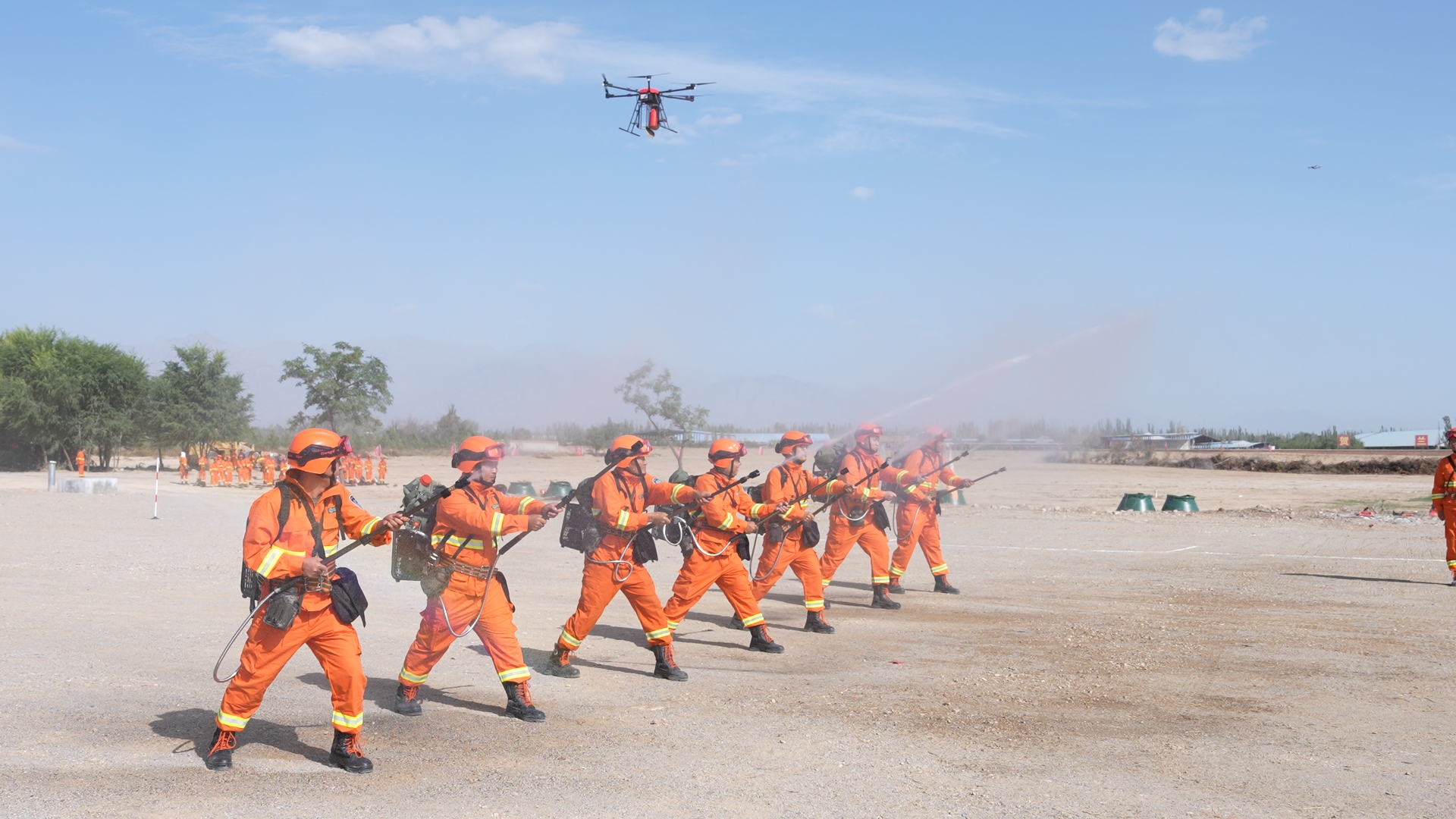 演练突出多部门联动,由宁夏贺兰山国家级自然保护区管理局牵头,联合银川市应急管理局、银川市西夏区应急管理局、银川市西夏区消防救援大队、银川市西夏区自然资源局、银川市公安局西夏区分局森林和草原派出所、银川市西夏区森林火灾应急消防救援队等多家单位协同参与,构建起“统一指挥、分工明确、高效联动”应急处置格局。演练中,多套科技装备悉数亮相:系留无人机构建空中通信中继平台,确保火场通信信号全域覆盖;多型号侦查与灭火无人机精准勘察火情并实施定点扑打;防火机器人深入危险区域执行防火隔离带开设任务,充分彰显“人防+技防+物防”的现代化防火体系优势。本次演练累计投入专业救援力量120余人,动用各类车辆及新型防火装备100余台(套),是推动“强化科技支撑、发展防火新质生产力”的生动实践,展现了保护区应对处置突发火情的专业化、高效化水平。