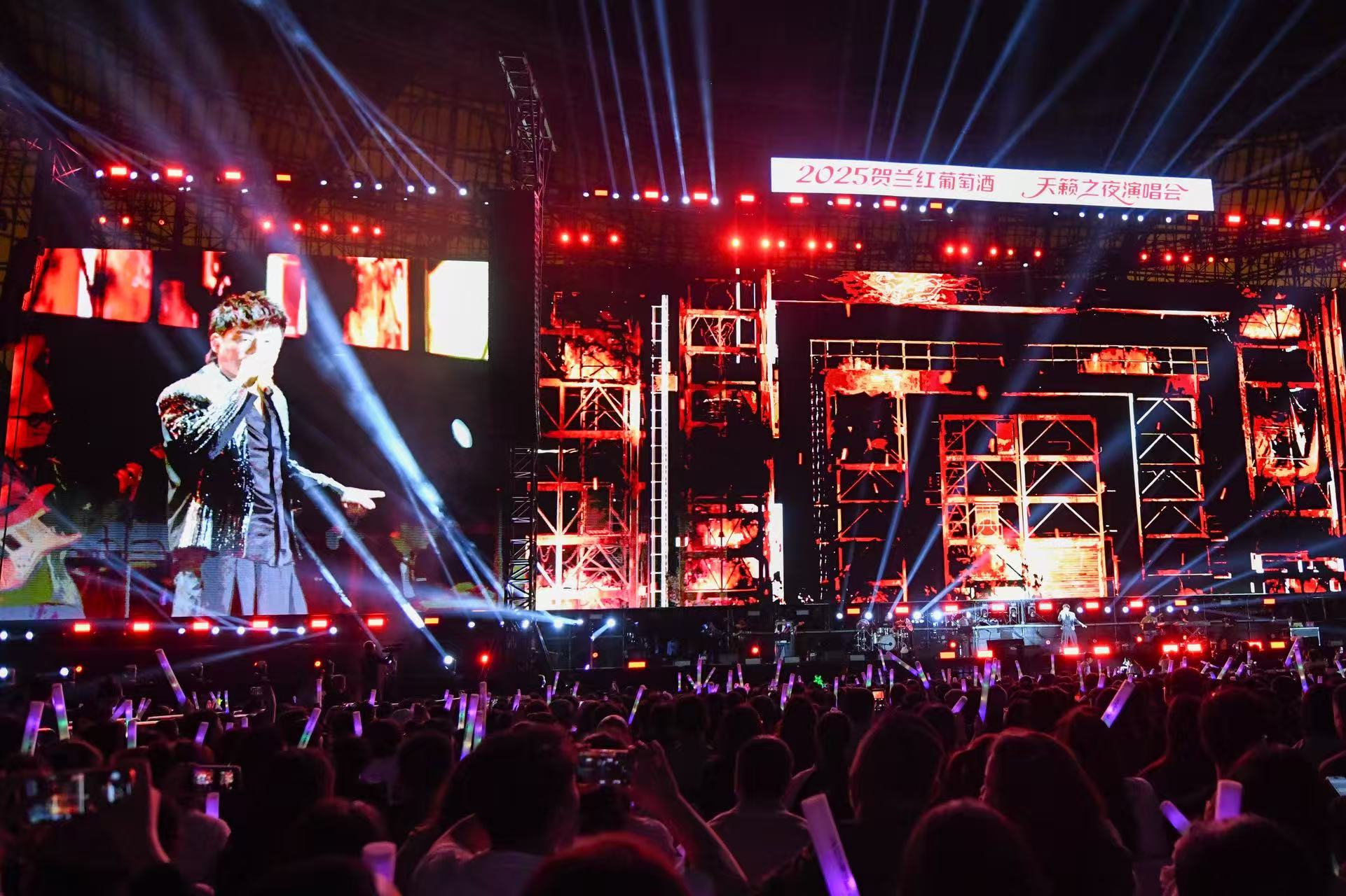 据悉,本次演唱会吸引了三万名观众到场,现场秩序井然。从经典旋律的深情演绎到本土美酒的风味加持,这场“音乐+美酒”的跨界盛宴,不仅为观众带来了难忘的秋夜体验,更让贺兰山东麓的葡萄酒文化借助音乐的力量进一步传播。