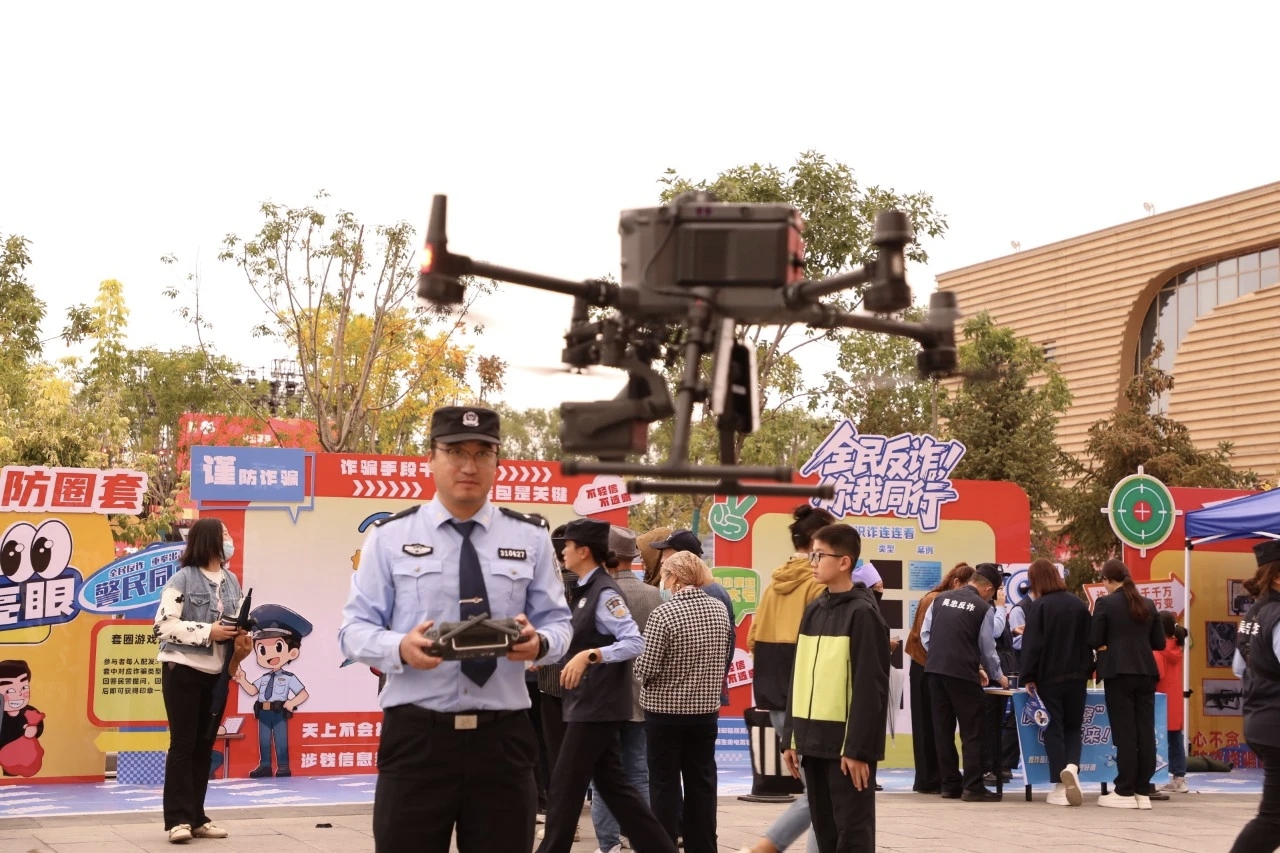 本次活动还创新采用“空中+地面”一体化宣防模式。在空中,警航巡回飞行、实时喊话,实现宣传全覆盖。在地面,“反诈警官”NPC巡游互动、精准讲解,增强群众参与感。线上线下同步发力,区市县三级新媒体平台直播引流,超50万网友线上观看,有效提高了吴忠公安反诈宣传品牌的知名度,构建起了立体化宣传网络。(图片由警方提供)