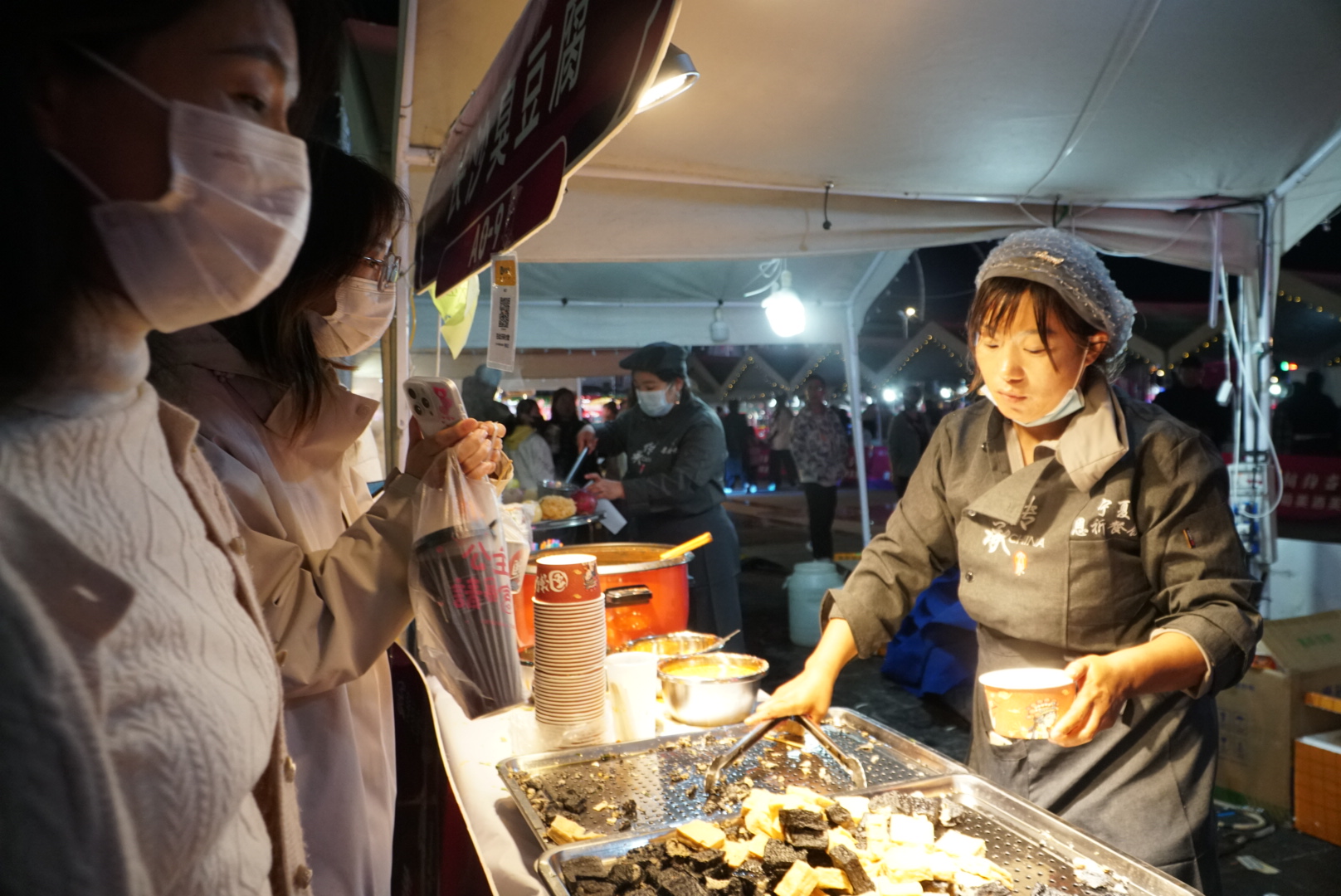 群众是这场文旅盛宴的“主角”。马姨妈团队等本土文艺团体带来的《民歌串烧》、太极剑表演、电子琴独奏等节目轮番上演,哑剧《你有我也有》以诙谐视角再现乡村生活,引得台下笑声不断。非遗体验区与美食区相邻,剪纸、刺绣的精巧技艺,与豆腐雕刻、面点制作的娴熟手法相映成趣,实现“美食搭台,文化唱戏”。