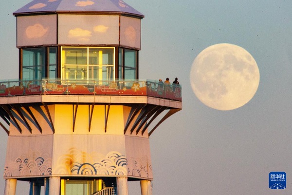 10月6日,人们在黑龙江省佳木斯市富锦万亩水稻公园赏月。月满中秋,家国同圆。在祖国各地,人们同赏明月、共度佳节。 新华社发