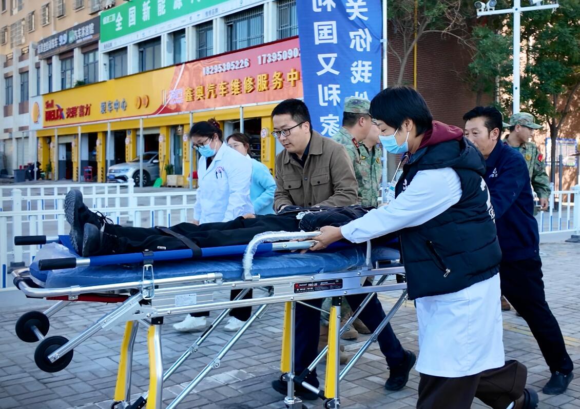 当天15时,演练重点转向金凤区康苑雅居小区。这里正在组织地震应急疏散演练,相关人员有序引导居民疏散,并实施了突发火情救援与伤员转运。整个演练全程聚焦实战、突出实效,各参演单位严格按照预定方案高效协同,展现了基层力量的快速响应和规范操作能力。