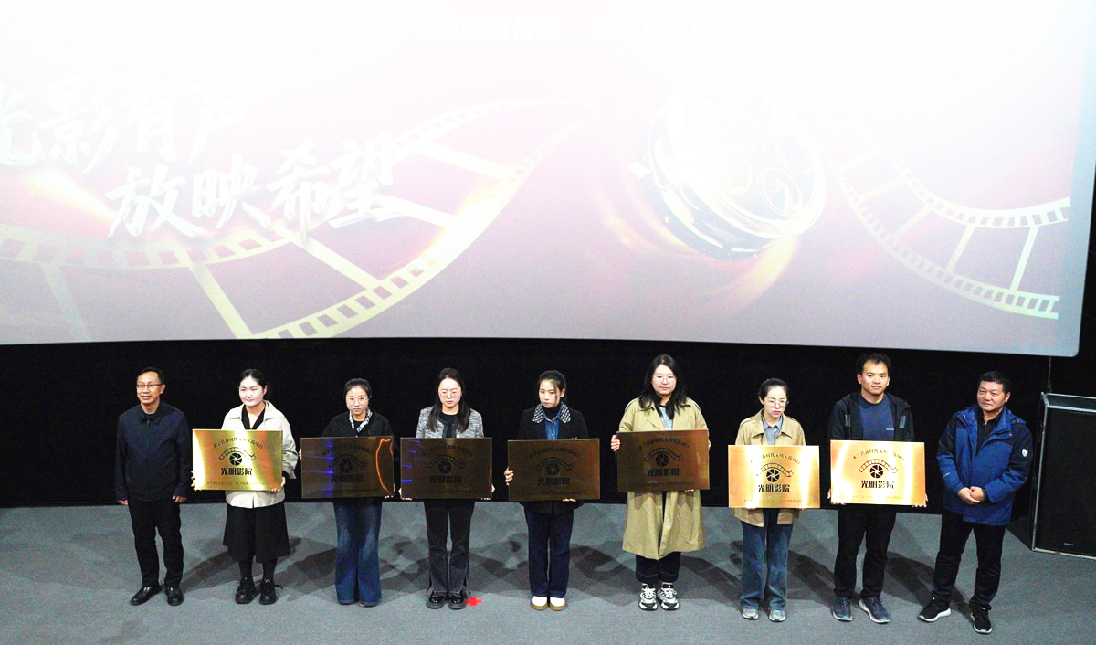 随着红绸徐徐落下,“光影有声·放映希望”2025年永宁县“光明影院”文明实践项目正式启动。9个代表新时代文明实践分中心、乡镇实践所(站)及社会影院的点位依次接过“光明影院”牌匾。“每一块牌匾,都是一份沉甸甸的责任。”永宁县委宣传部副部长、文明办主任唐英荣表示,“它们不仅是电影的放映点,更是传递文明、输送温暖的阵地。”