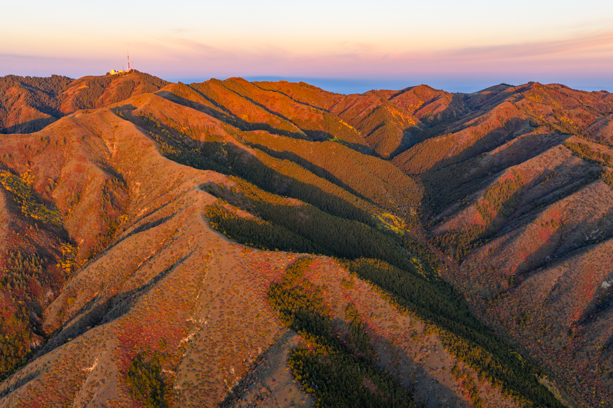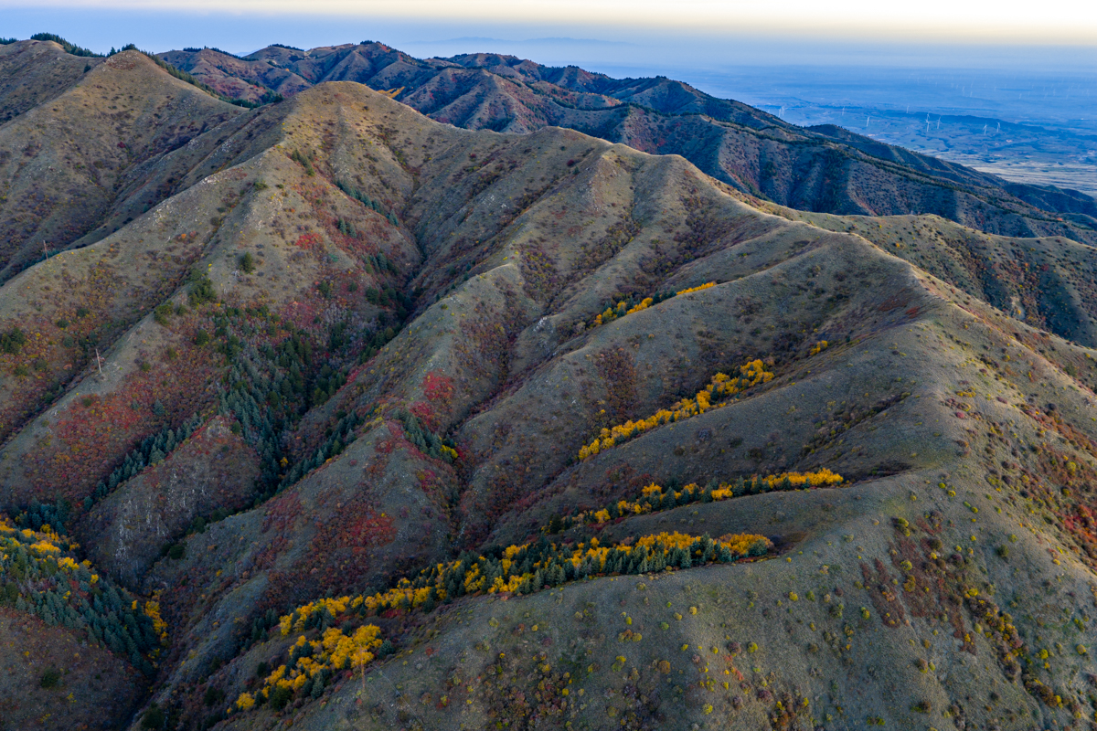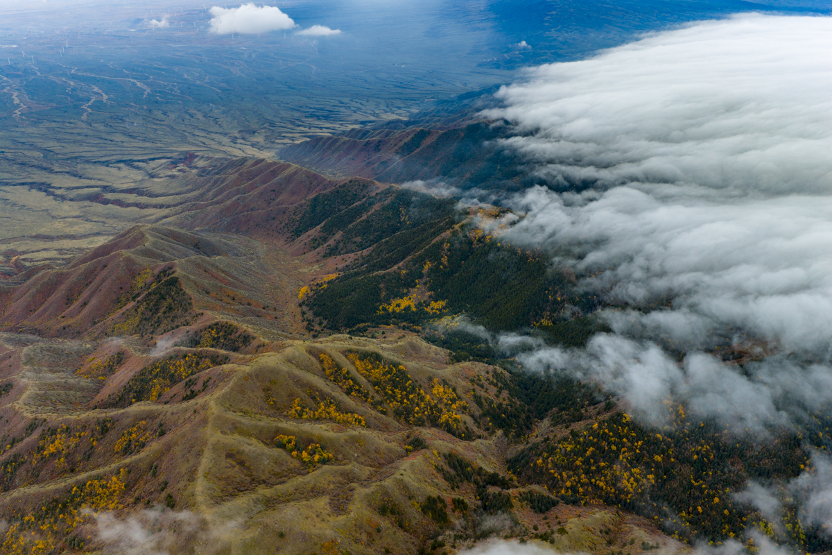 近日,宁夏罗山在秋日暖阳的照耀下,展现出令人陶醉的壮美画卷。连绵起伏的山峦,植被色彩斑斓,金黄、橙红与深绿交织。山间云雾缭绕,似轻纱般为罗山增添了几分神秘。当朝阳升起,暖暖的阳光洒在山巅,整个罗山被染成橙红色,美不胜收。 宁夏新闻网记者 祁瀛涛 摄