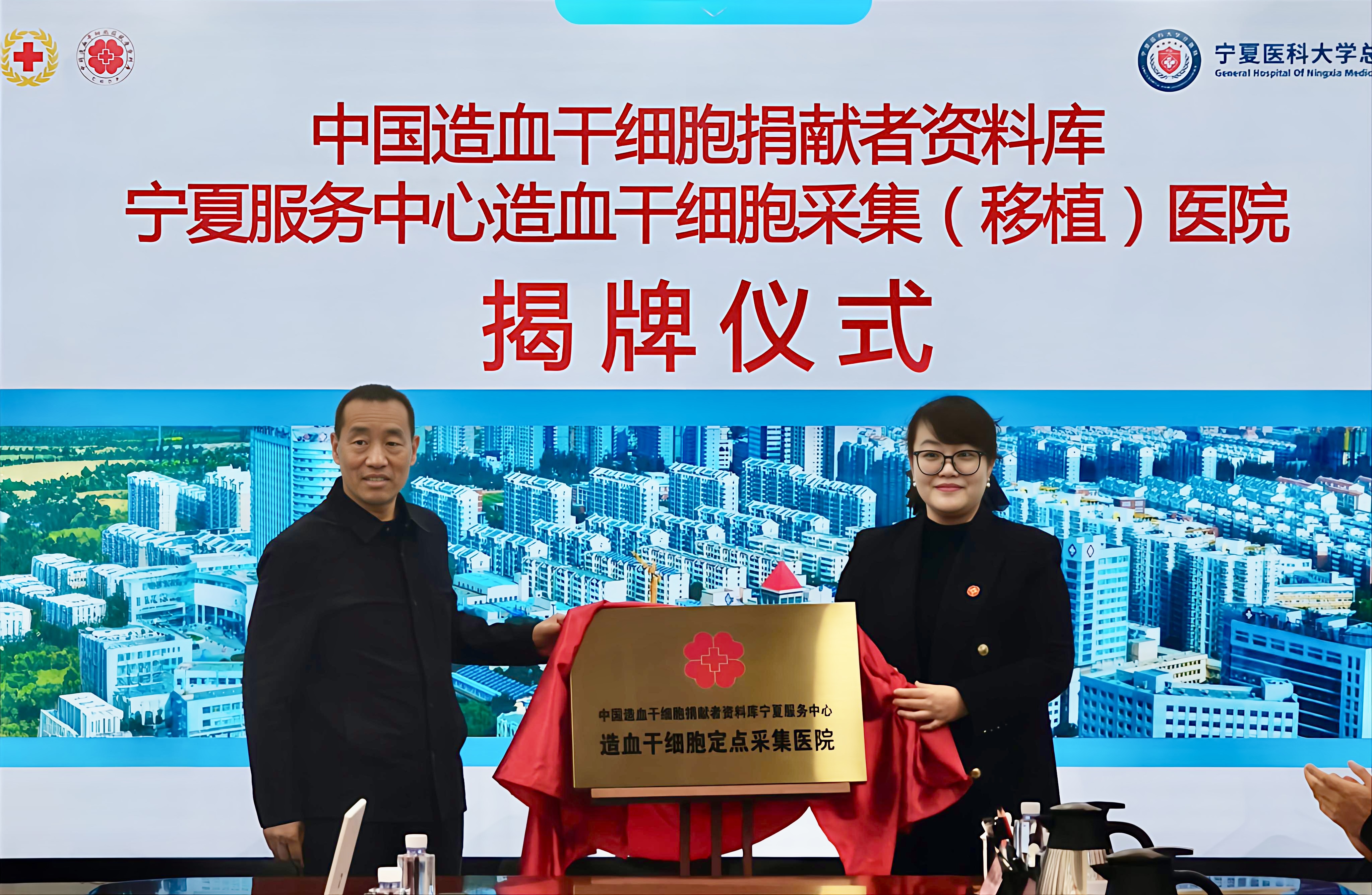 宁夏新闻网讯(记者 张玉婷 文/图)10月21日,中国造血干细胞捐献者资料库宁夏服务中心造血干细胞采集(移植)医院在宁夏医科大学总医院揭牌成立。该院旨在让宁夏血液病患者在“家门口”就能完成移植,彻底解决其异地就医的困境,同时也为本地造血干细胞捐献者提供了极大便利。