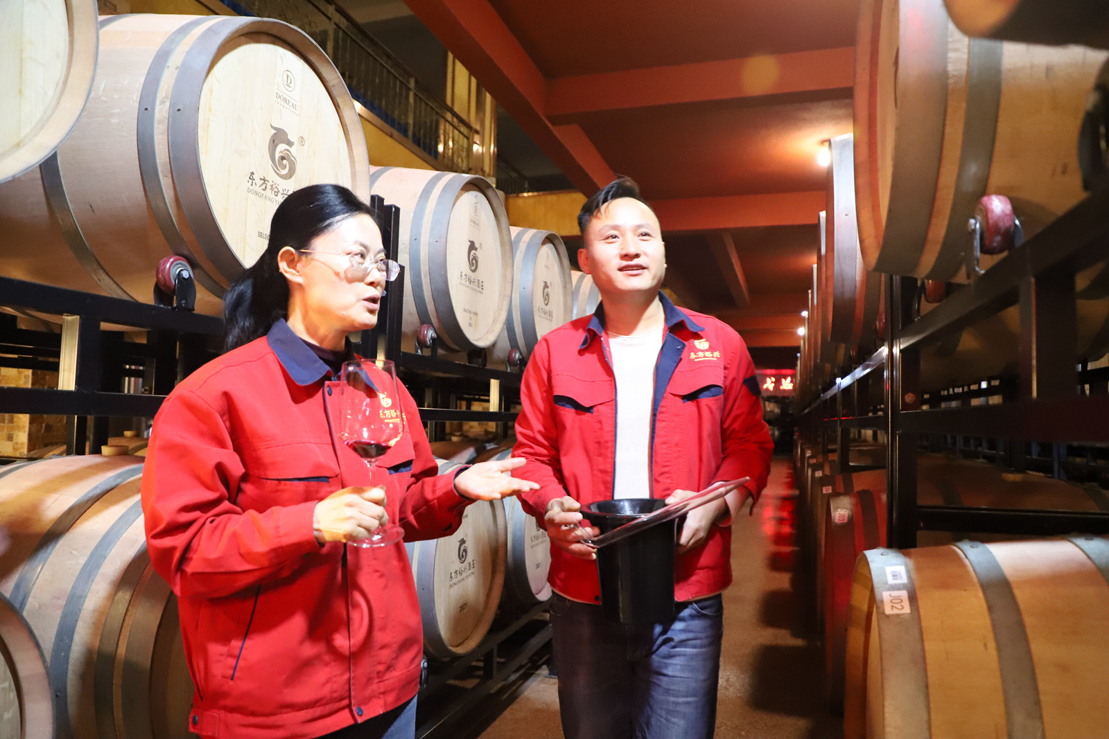 红寺堡区肖家窑葡萄产业园位于中航路东南侧,园区以东方裕兴酒庄为龙头,辐射带动昱豪、明雨等酒庄发展,2025年,酿酒葡萄产量为3000吨,转化为葡萄酒1800吨,产值达1.4亿元。园区企业依托“企业+基地+农户”合作模式,产生了出土、田间管理、采摘等用工需求,带动周边上源、中圈塘、南源等村群众务工达15万余人次,累计实现务工创收1500余万元。