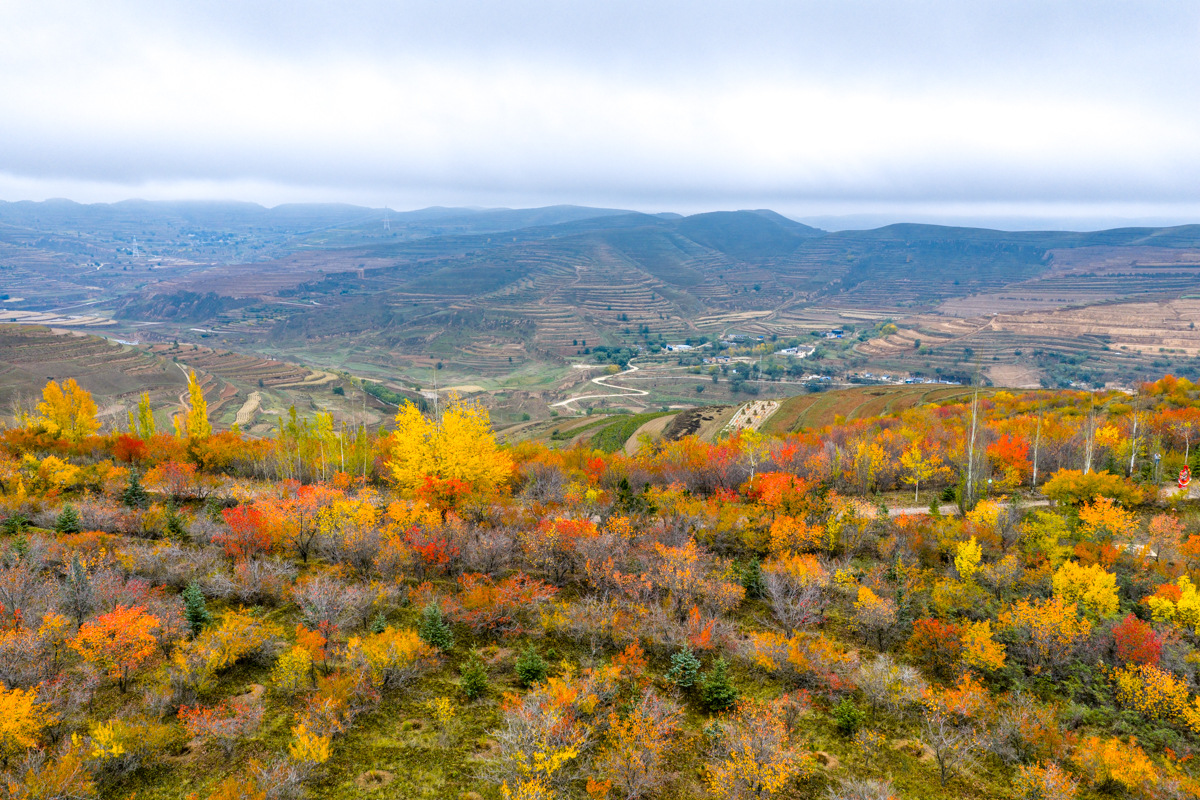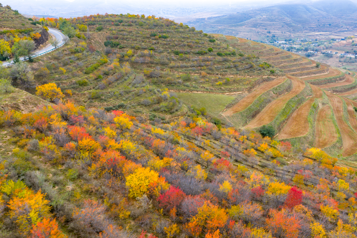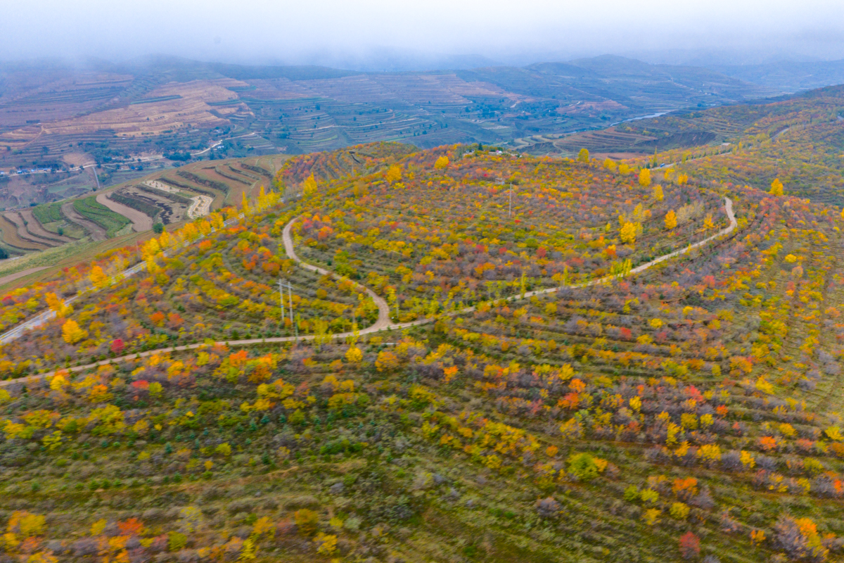 深秋时节,宁夏西吉县兴平梁宛如一幅绚丽的画卷。蜿蜒的公路盘旋在五彩斑斓的山坡间,树木像是被打翻的调色盘,染上了金黄、橙红等色彩。远处,层层梯田与山峦相依,湖水如镜点缀其间。云雾缭绕下,这里静谧而壮美,每一处风景都诉说着秋日的浪漫与诗意,令人心醉神迷。 宁夏新闻网记者 祁瀛涛 摄