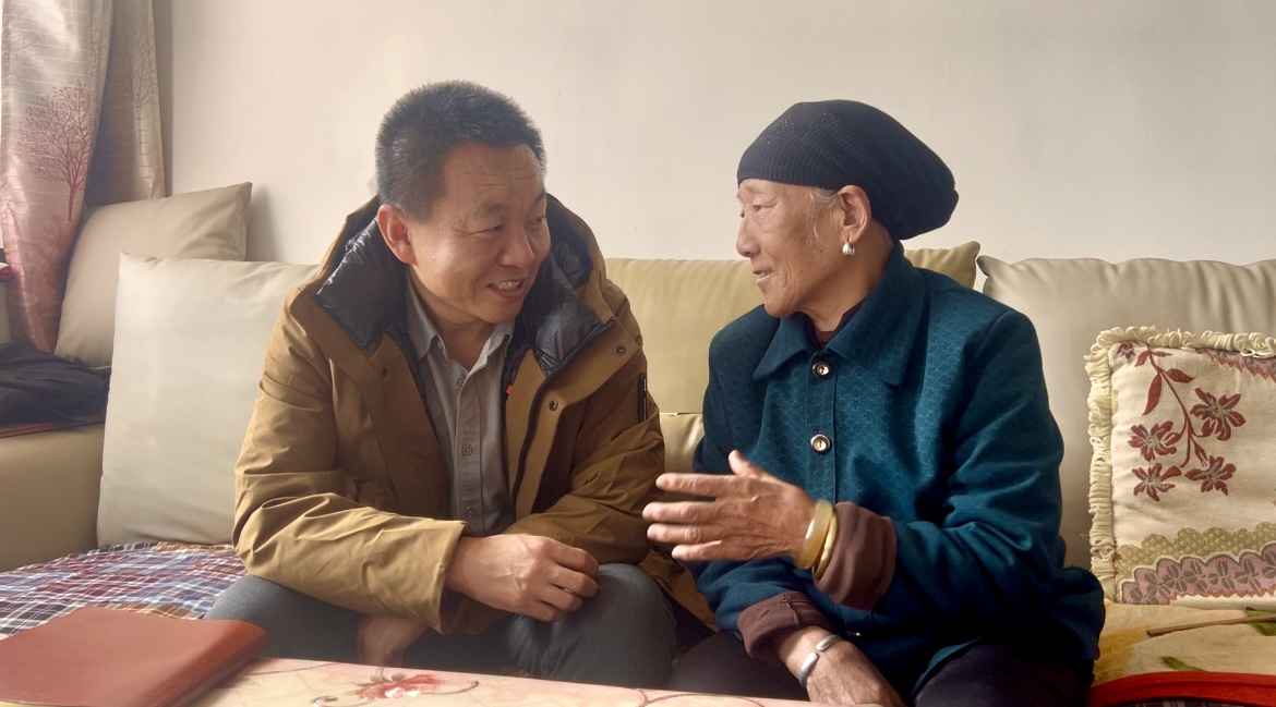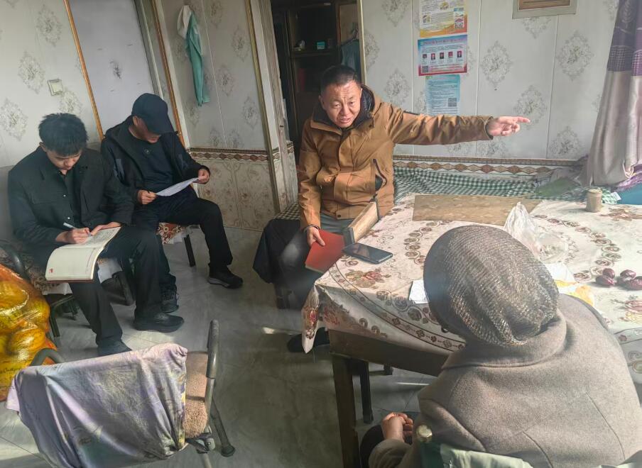 蔺宁波入户向村民了解情况。(图片由受访者提供)