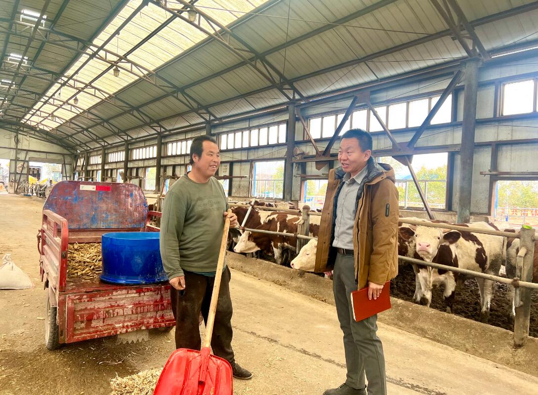蔺宁波在肉牛养殖场了解肉牛养殖情况。