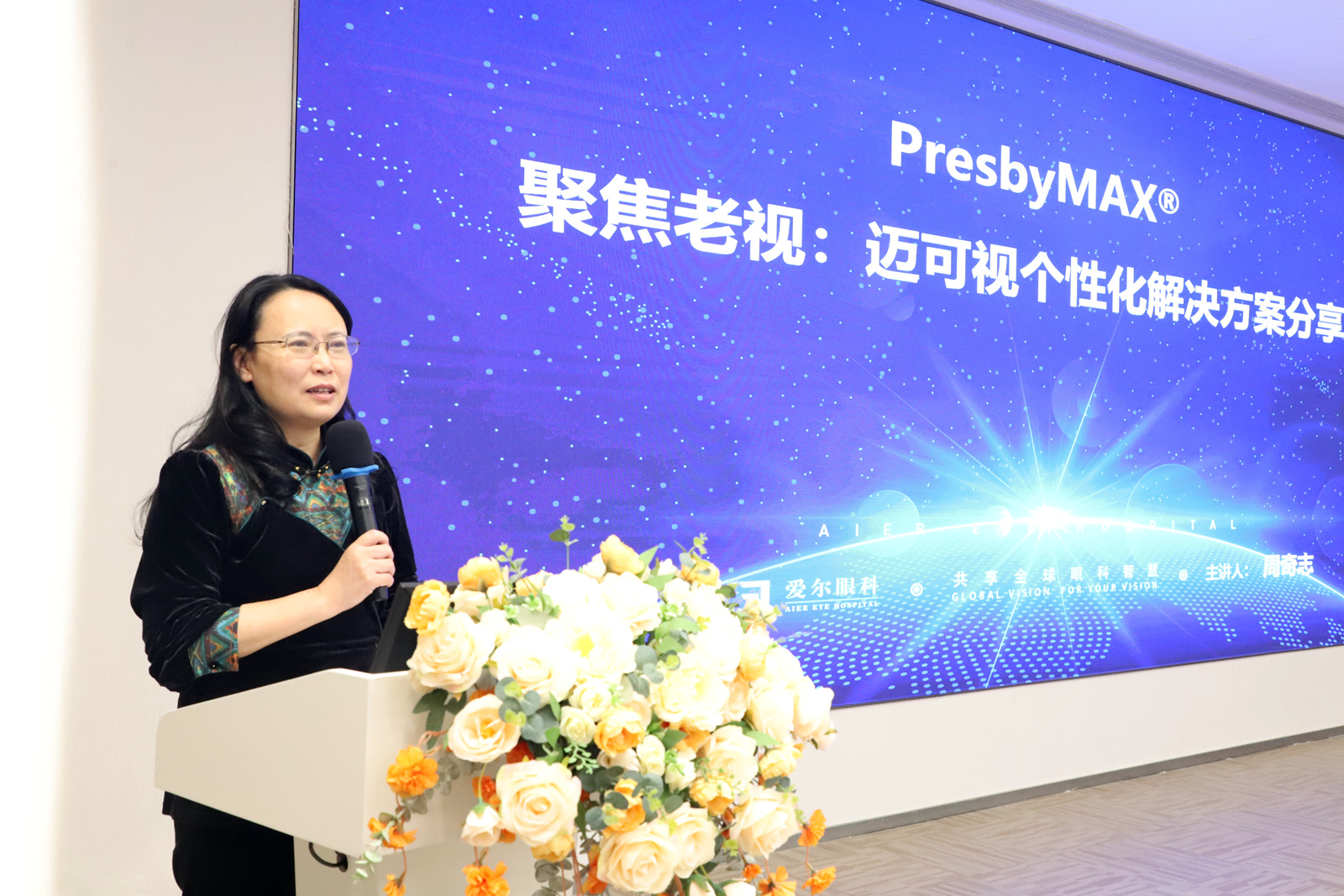 在专家授课环节,全国知名近视矫治、角膜疾病诊治及角膜移植手术专家、重庆爱尔眼科医院总院CEO、院长周奇志带来《PresbyMAX® 聚焦老视:迈可视个性化解决方案》主题分享。她从技术原理、临床应用、疗效优势等维度,详细解读了PresbyMAX®技术如何通过个性化定制,实现老视的精准矫正,为临床诊疗提供了技术参考。