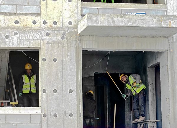 当天,记者项目现场看到,工人正在室内进行施工作业,塔吊已暂停工作。“项目总体进度已达65%,施工重点已转向室内填充墙砌筑、内墙抹灰及外墙保温等工序。”嘉鹏介绍,施工过程中,采用“穿插流水作业”方式,使各工种紧密衔接,整体效率大幅提升。针对即将到来的冬季,项目团队已制定专项施工方案,力争在严寒前完成所有湿作业。