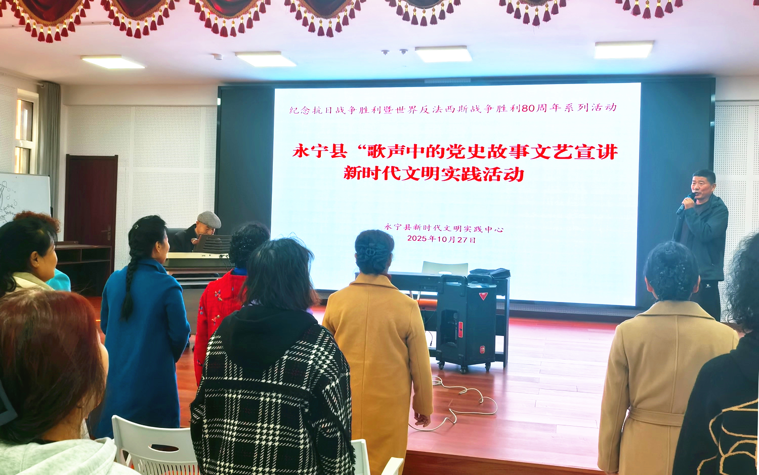 宁夏新闻网讯(记者 杨兆莲)“我的家在东北松花江上,那里有我的同胞,还有那衰老的爹娘……”10月27日,一段深情的旋律在永宁县新时代文明实践中心响起。这不是普通的音乐会,而是一堂“歌声中的党史故事”文艺宣讲课。台下,60余名群众凝神聆听,有的眼含热泪,有的轻声跟唱,仿佛随着歌声回到了那个烽火连天的年代。