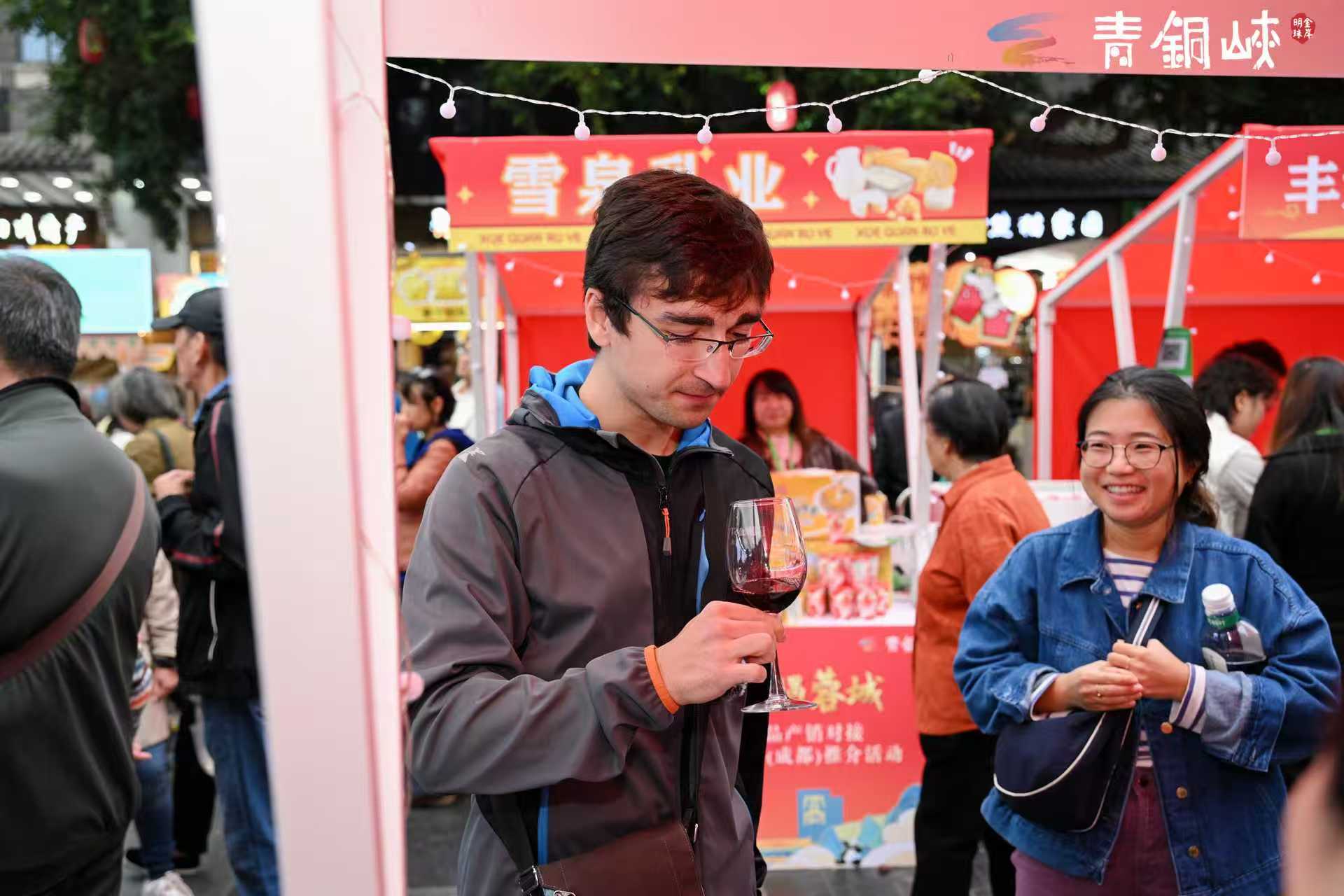 “宁夏葡萄酒巴适得很!”活动现场,游客们细细品味着佳酿中细腻的单宁与饱满的果香,与酒庄工作人员深入交流咨询。不少成都本地游客品尝后纷纷点赞,直言青铜峡葡萄酒口感醇厚、风味独具。
