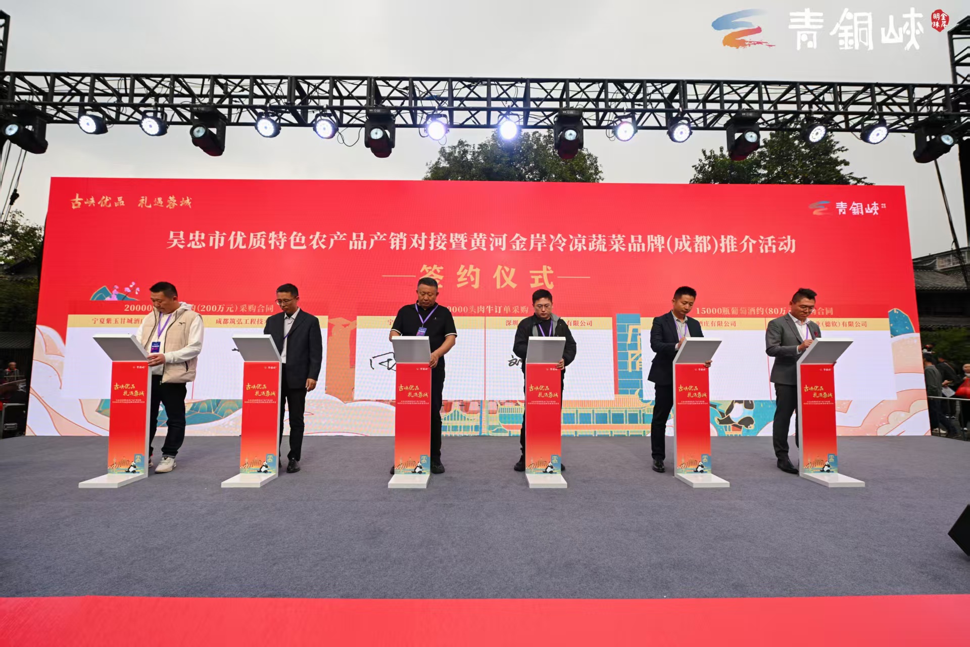 在现场合作签约环节,紫玉甘城酒庄与成都筑弘工程技术咨询有限公司成功牵手,宁夏云图酒庄也与阿迦洺酒业(德钦)有限公司正式签约,两场合作共敲定总价值280万元的葡萄酒订单,为青铜峡葡萄酒进一步深耕西南市场、拓宽产销渠道奠定了坚实基础。(图片由青铜峡市葡萄酒产业发展服务中心提供)