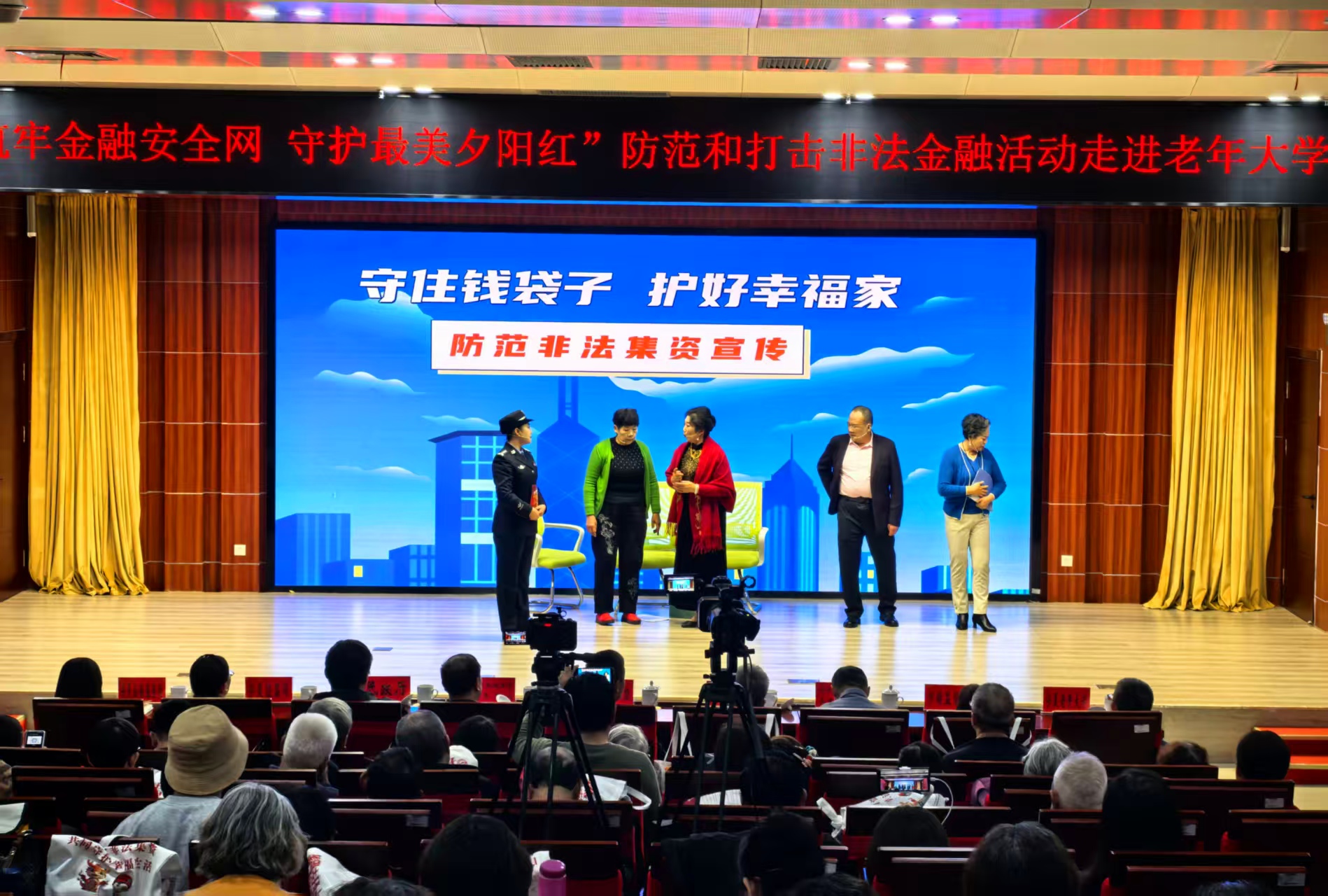 本次活动以“筑牢金融安全网,守护最美夕阳红”为主题,通过书画作品展、情景剧、讲座等群众喜闻乐见的形式进行。老年大学学员围绕“云养经济”“投资返利”“康养旅游”等主题,自导自演的情景剧生动演绎了常见非法金融活动套路和危害;专题讲座教会老年人“三不一多”防骗口诀:不轻信、不透露、不转账、多核实。活动现场,老年人踊跃提问,工作人员耐心解答,气氛热烈而温情。