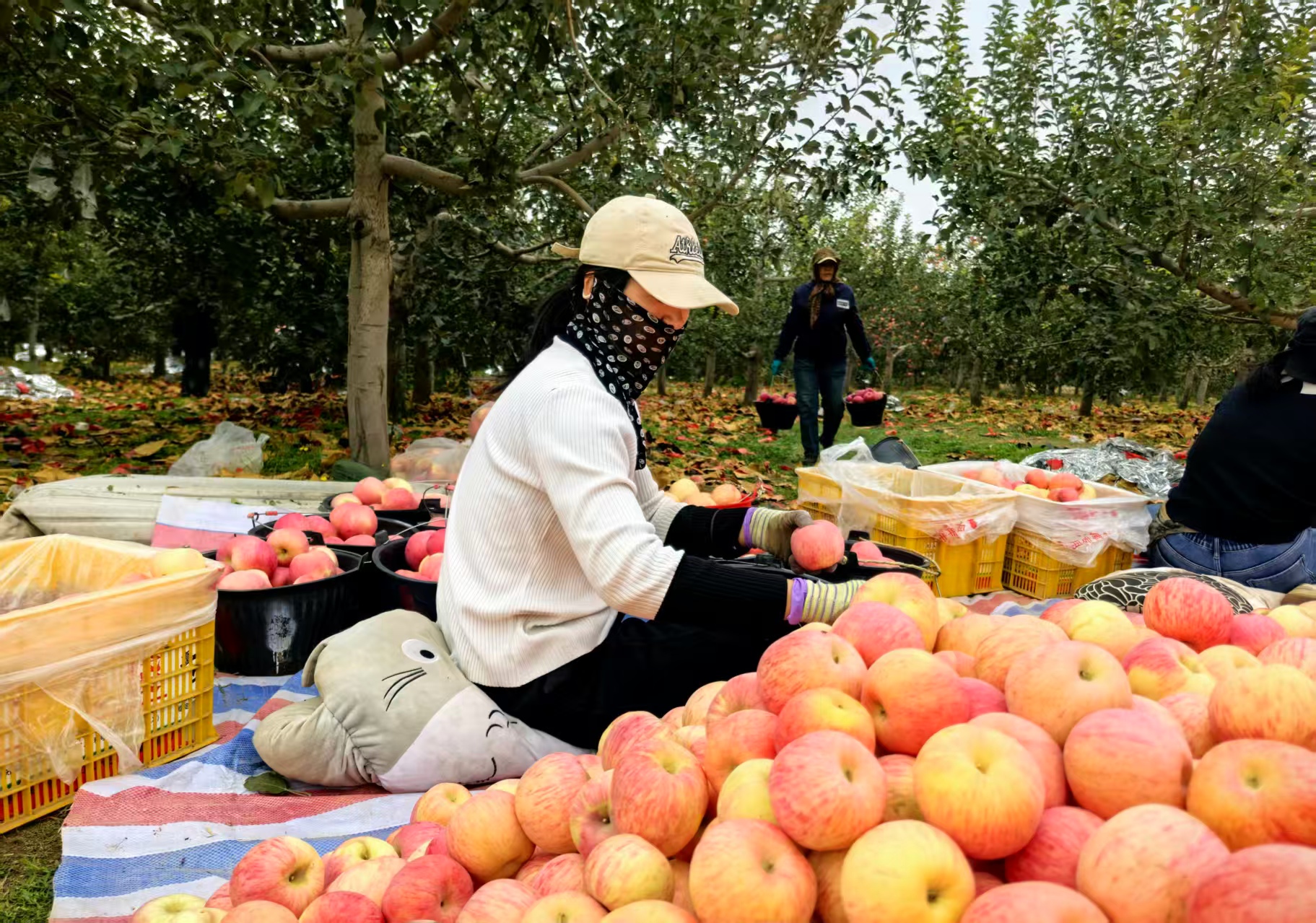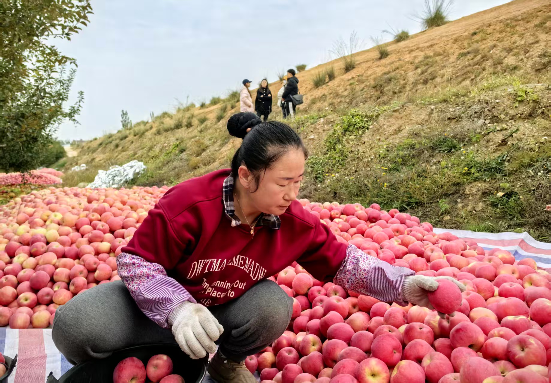 田间地头,果农穿梭于果林之间,灵巧的双手在枝叶间翻飞,将一个个红彤彤的“宝贝”轻巧地摘下,小心翼翼地放入筐中。不远处,分拣、装箱的流程有条不紊,一筐筐精选的苹果被整齐码放,即将搭乘货运专车,奔赴全国各地。