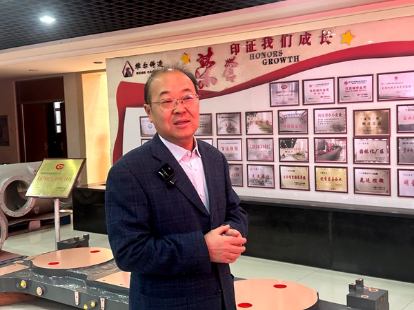 宁夏维尔精工董事长王小宁向记者介绍企业高质量发展情况。