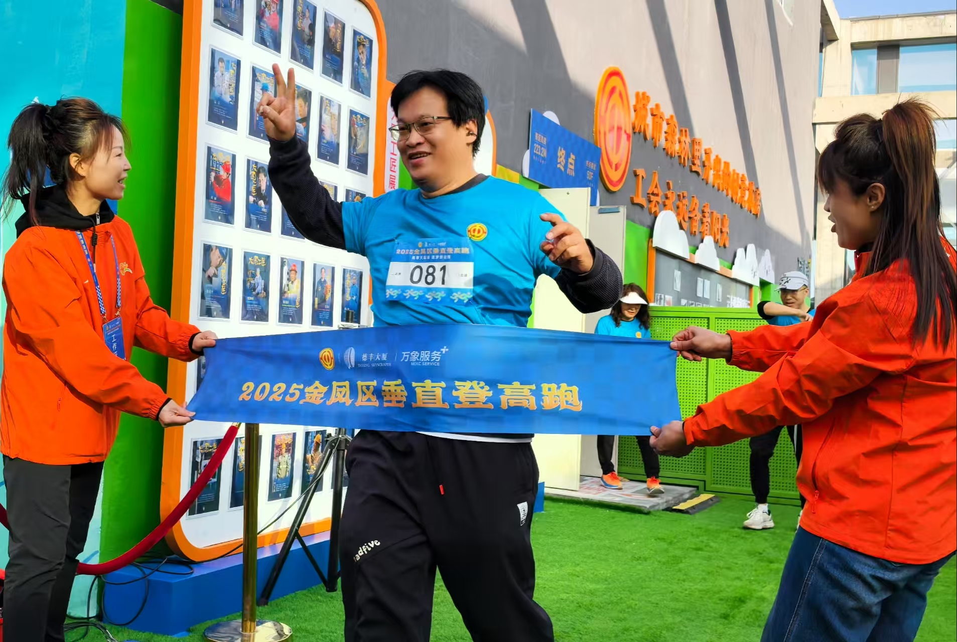 宁夏新闻网讯(记者 闫文丽 文/图/视频)11月7日,为庆祝中华全国总工会成立100周年,2025金凤区垂直登高跑在银川市德丰大厦燃情开赛。活动吸引了来自各行各业的300名职工挑战垂直攀登223.2米、50层的高度。