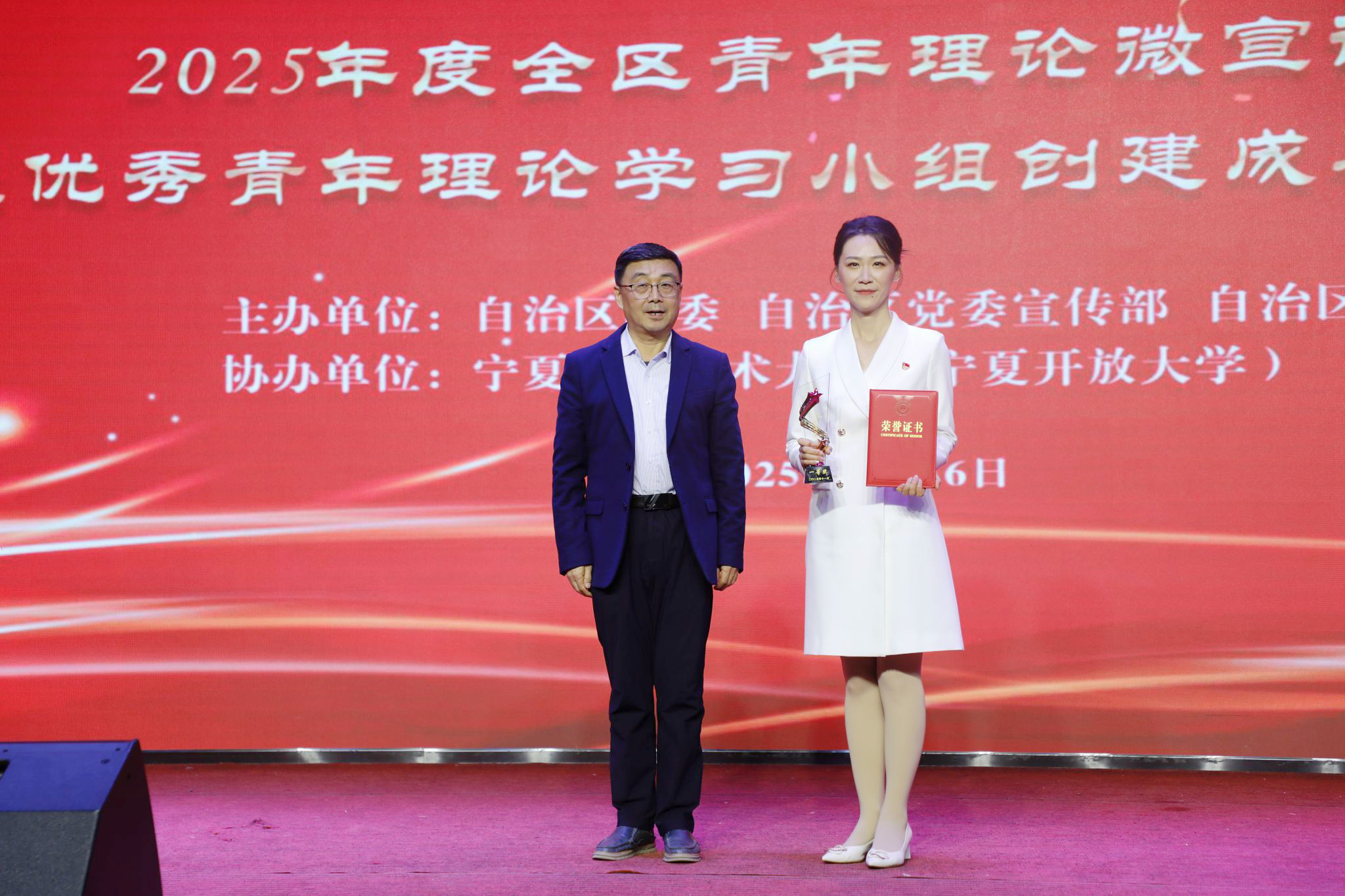 宁夏新闻网讯(记者 胡俊)近日,由自治区团委、自治区党委宣传部、区直机关工委联合主办,宁夏职业技术大学承办的2025年度全区青年理论微宣讲大赛暨优秀青年理论学习小组创建成果展示活动圆满落幕。宁夏职业技术大学团委副书记尚竺莹代表青年理论学习小组汇报研究成果,以扎实的理论功底和生动的宣讲表现荣获全区第一名,创下学校在该赛事中的历史最佳成绩,充分展现了学校在青年理论武装和思想引领工作方面的成效。