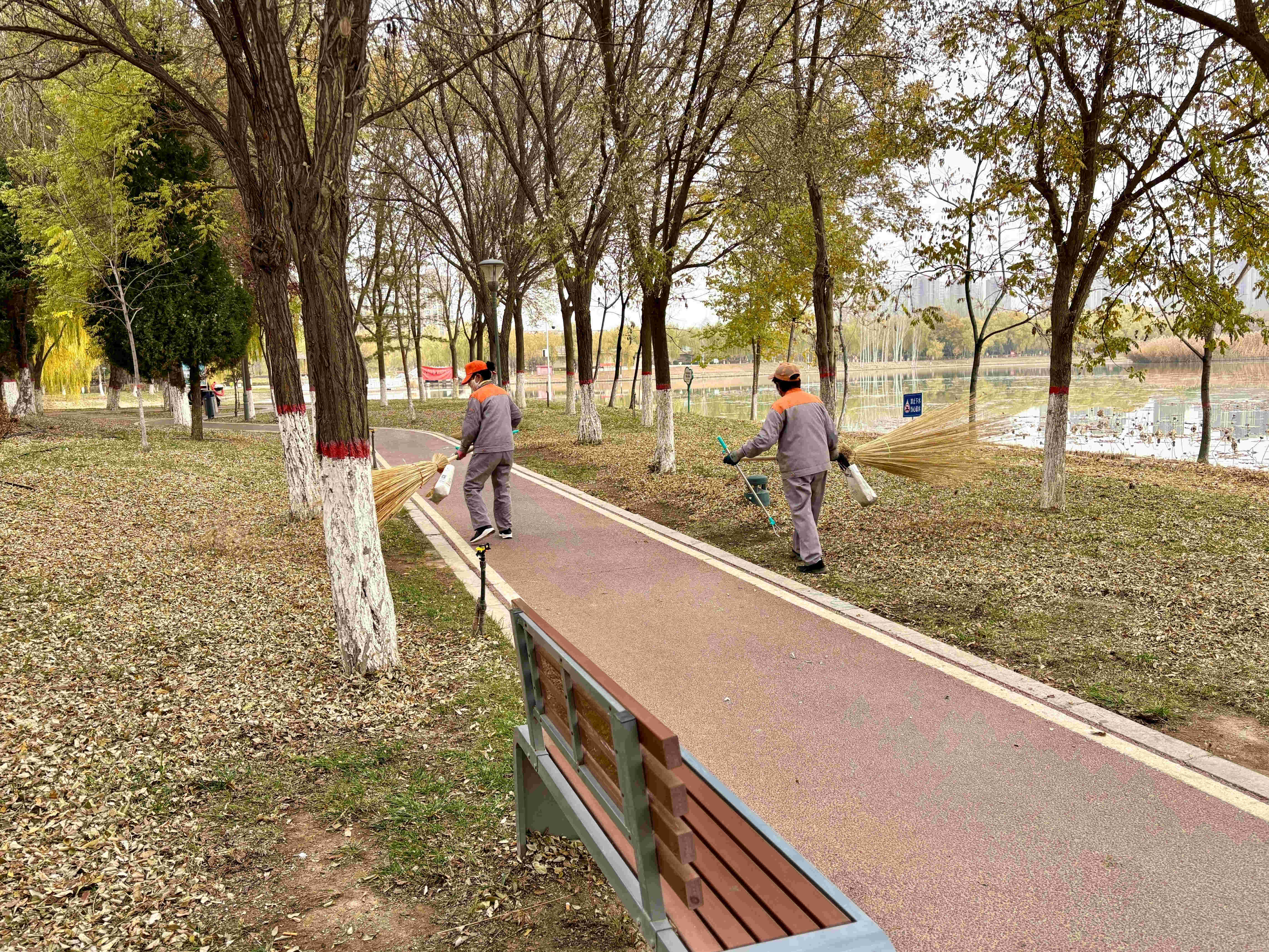 今年以来,银川凤洁综合服务有限公司显著加强了安全保障硬件配置,在园区新增救生圈100余个、救生绳100余条、救生杆60余个。公园管理方根据季节特点动态调整保洁方案。尤其在秋季落叶高峰期,14名保洁人员每日清晨即开始对约400亩的绿地区域进行清扫,大风天气下更是增加作业频次,在确保道路整洁的同时,最大限度减少对市民晨练健身的影响。