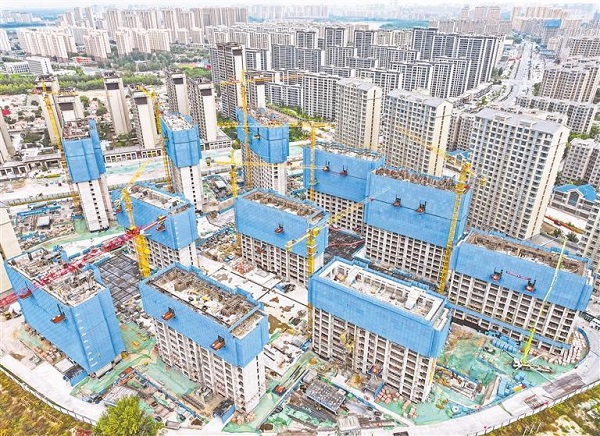 10月7日,银川市高桥二期配售型保障性住房建设项目建设现场,一栋栋崭新居民楼拔地而起。该项目是银川首个开工建设的配售型保障性住房项目,已于近日顺利封顶。该项目规划建设12栋住宅楼,房源752套,主要面向本市城镇户籍住房困难家庭以及引进的高层次急需紧缺人才等群体。 宁夏日报记者 马楠 摄