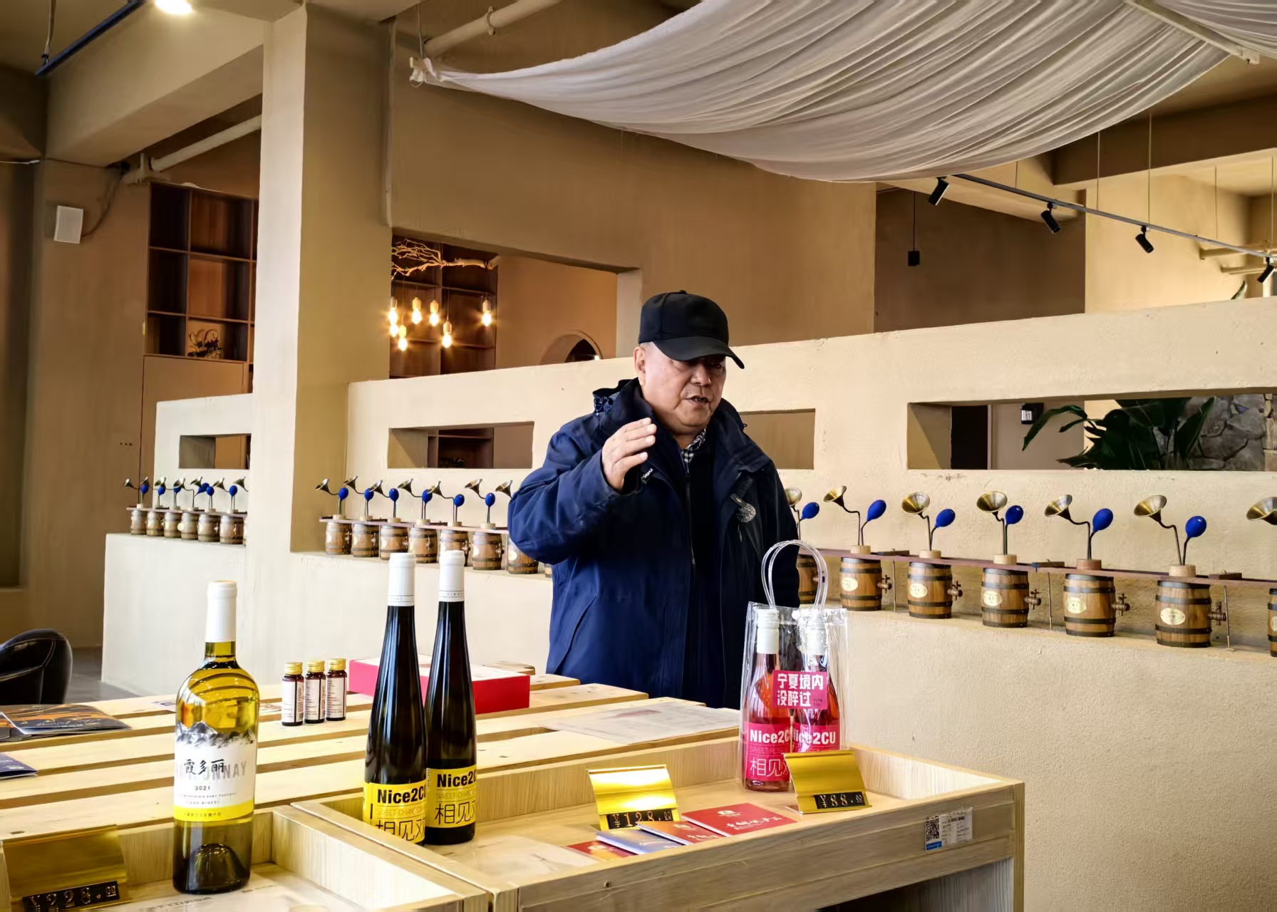 西班酒庄庄主金家瑞,这位在湖南老家做进口红酒的行家,紧紧抓住2018年宁夏到湖南招商引资的机遇,让西班酒庄落户于青铜峡市鸽子山葡萄酒小镇,从起初租地种葡萄、租车间酿酒开始,到2021年申报建酒庄,如今项目全部建成,每年除了自种3000多亩葡萄外还收购1100吨左右的葡萄,酿酒量达720吨。他将经营了20多年的进口酒渠道转换成贺兰山东麓葡萄酒,并积极参加国内及国际著名的酒产品博览会及大赛,让产于鸽子山的葡萄酒有更广泛的影响力,打开国内外葡萄酒市场。