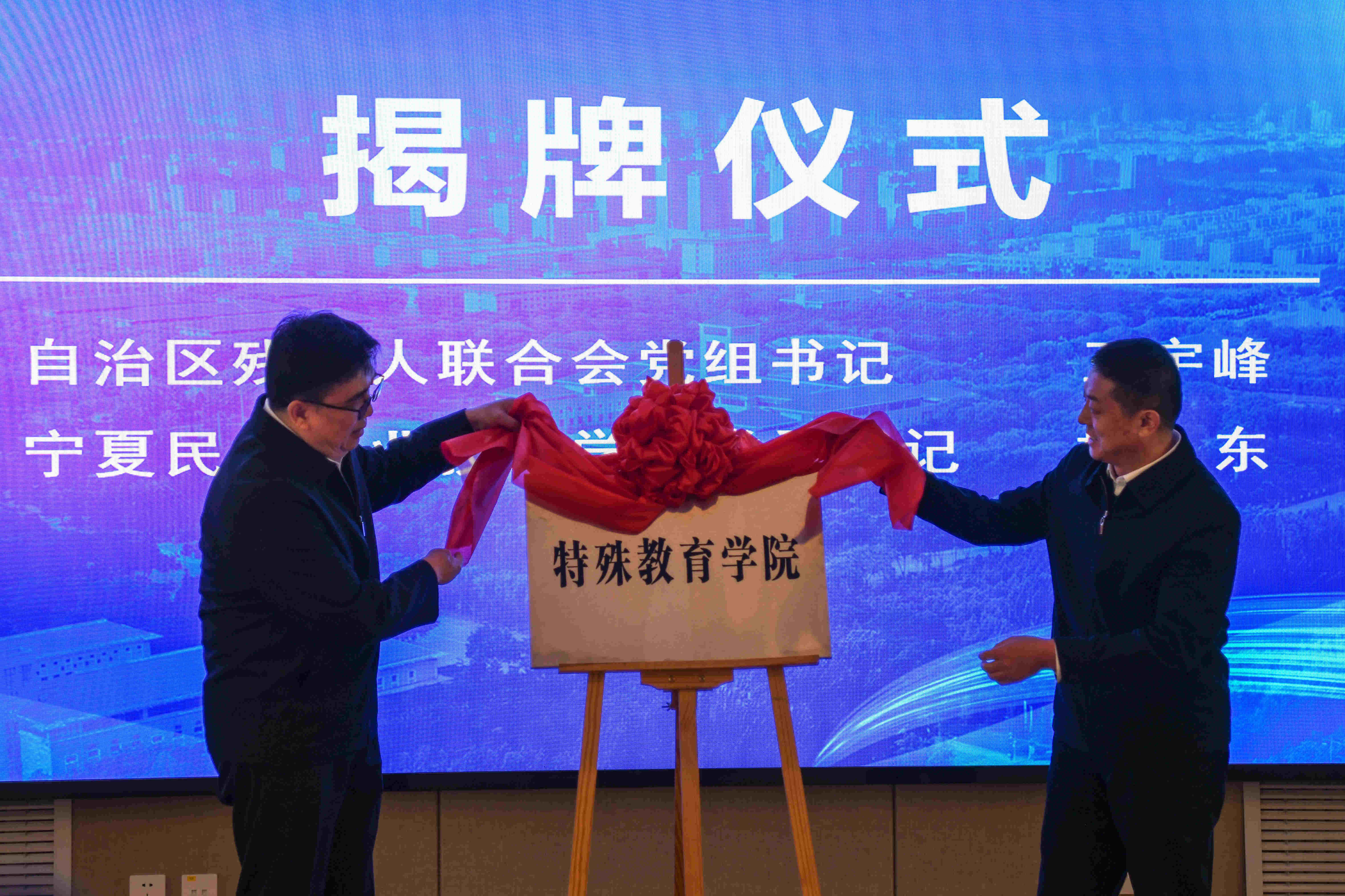 宁夏新闻网讯(记者 金文阳 文/图)11月19日,宁夏民族职业技术学院特殊教育学院在吴忠市利通区正式揭牌成立。该学院的成立标志着宁夏首个专门面向残疾人的高等职业教育机构诞生,填补了自治区残疾人高等职业教育的空白,是推动残疾人事业高质量发展的重要里程碑。