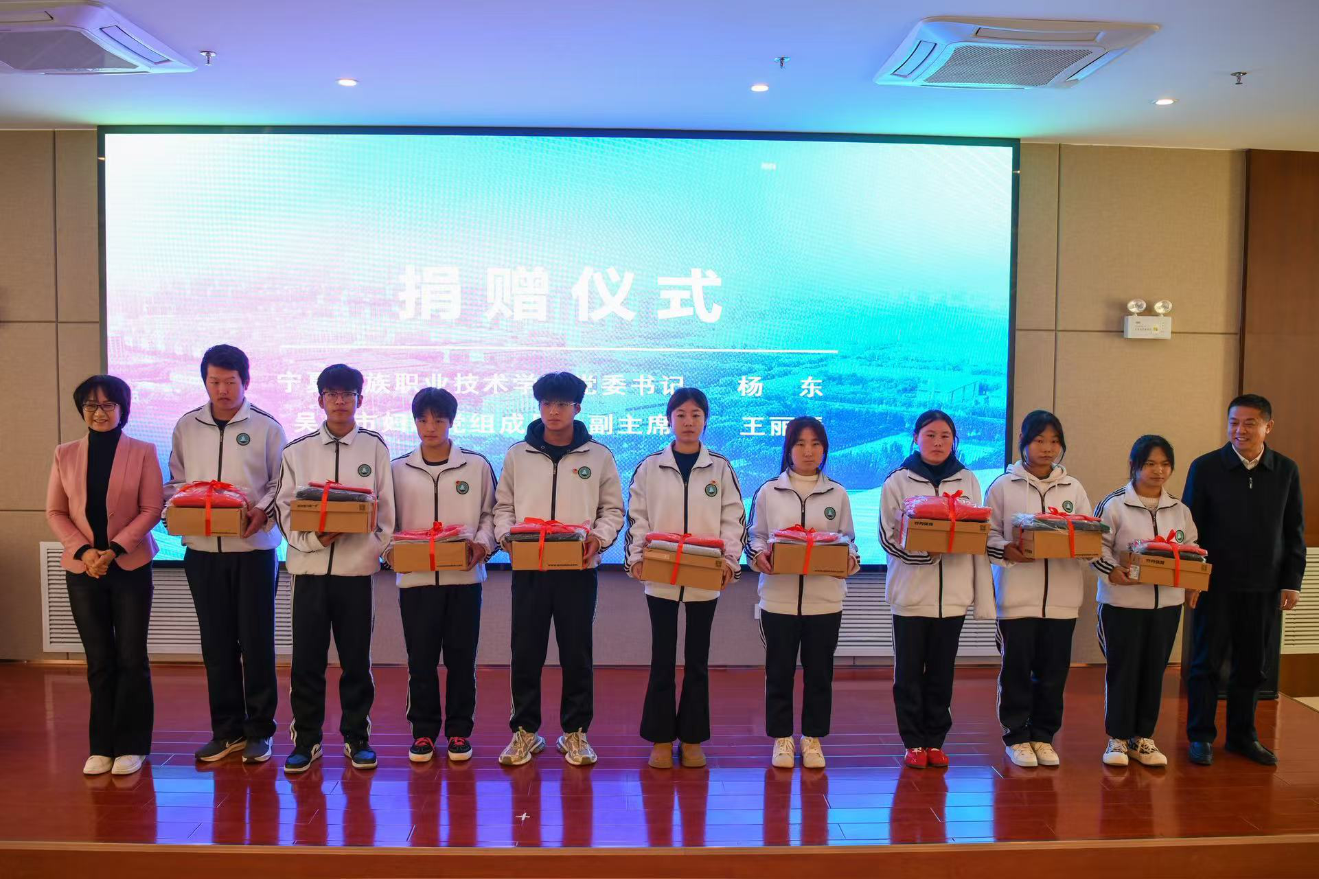 揭牌仪式上,自治区残联与宁夏民族职业技术学院相关负责人共同为学院揭牌,并签署了《联合开展宁夏残疾人高等职业教育协议书》。同时,为关爱帮扶残疾及家庭经济困难学生,吴忠市妇联现场向学院300名学生捐赠了价值92563元的爱心物资,相关领导向受助学生代表发放了物资。