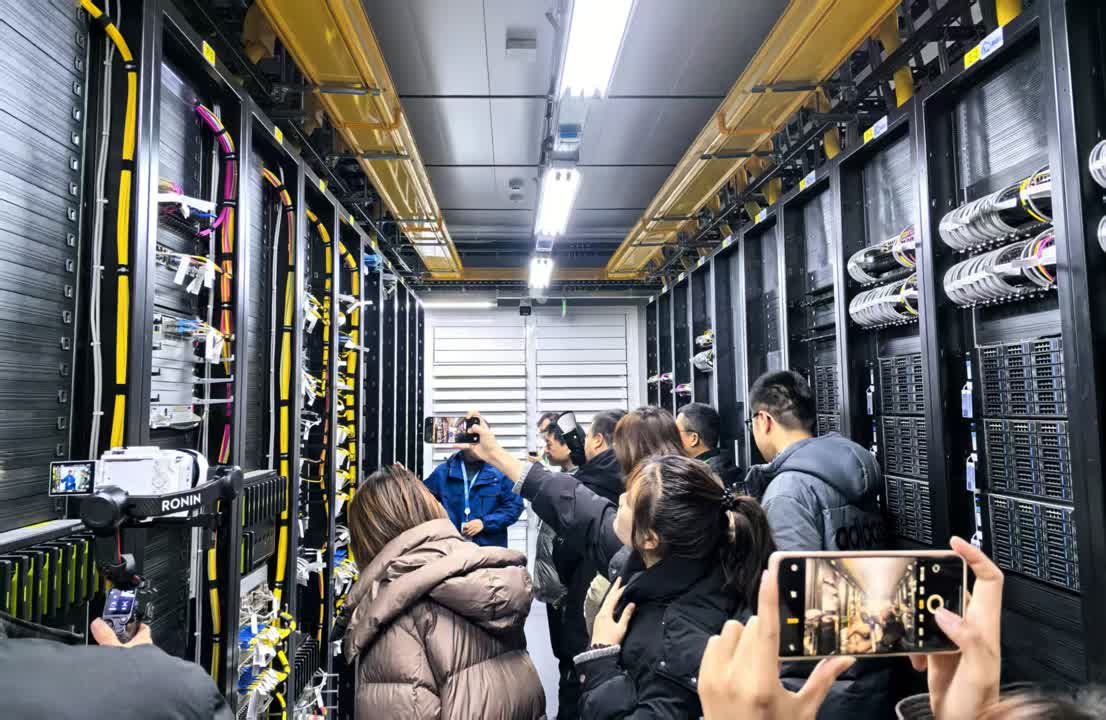记者走进中国移动宁夏中卫数据中心,看到占地200亩的A区已经满载运行,同样占地200亩的B区工程正在加足马力抢工期、保交付。作为宁夏首个大型绿色数据中心,这里累计投资超过100亿元,已建成9栋机房,投产机架7.65万架,机架销售率已达100%。这里承载服务了美团、阿里、腾讯等多家互联网头部企业,每天处理的数据量相当于180万台高性能计算机同时工作,能够承接近千亿参数的模型训练。