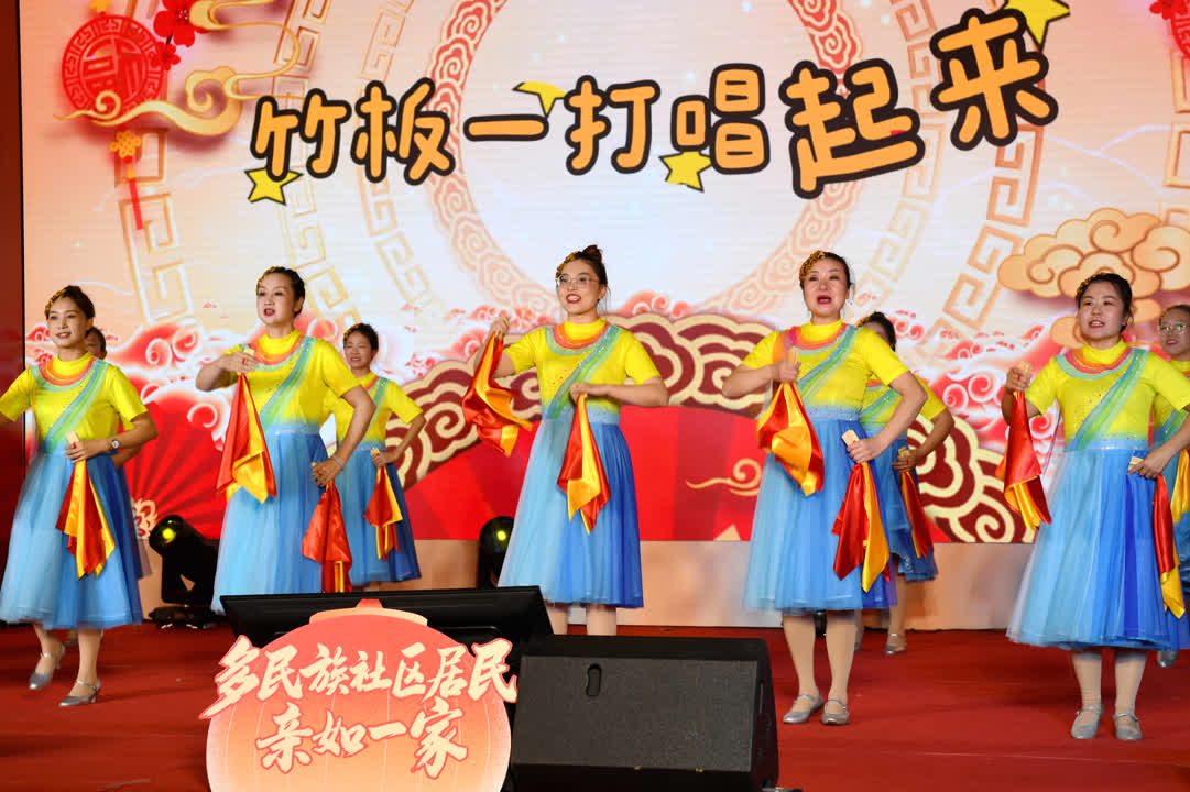 文艺展演生动诠释民族团结与互嵌发展内涵。开场舞《母亲是中华》、音乐快板《同心筑梦耀金凤》、情景剧《幸福“并”万家》、歌舞《市集欢歌》、金凤区实验小学情景剧《梦回河西走廊》、大合唱《亲如一家》等六大节目,分别展现了民生发展成就、社区治理温情、经济互嵌活力和文化交融传承。