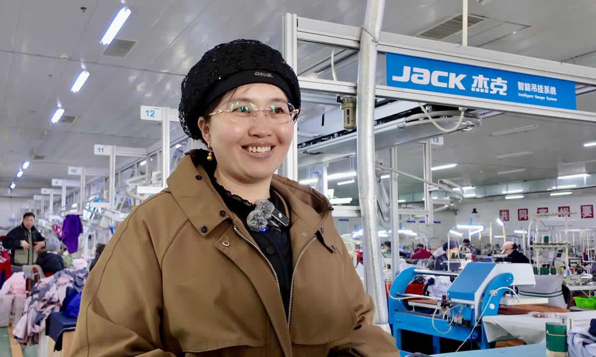 车间裁剪生产线小组长马小红,过去是只围着老公、孩子转的家庭主妇,进入车间后,她用5年时间从一名普通缝纫女工过成长为车间的“全能型”选手,带领着十几个女工一块儿做活,把日子过得红红火火。“走出家门走进车间,这是我们女工人生蝶变的重要节点,我们更加自信,更加珍惜工作机会。”马晓红说。