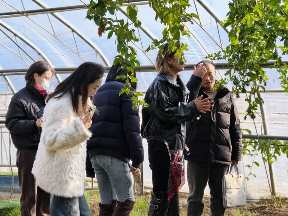 “我们村共7栋大棚种植南方水果,部分水果一个月后成熟,供游客采摘。”该村讲解员冯佳介绍,2023年,蒋滩村通过以“强村带弱村,抱团促发展”的党建引领模式,整合土地资源,建起500亩现代农业产业园,先后引进无花果、芒果、四季梨等40多种热带水果,全力打造“南果北种”品牌。