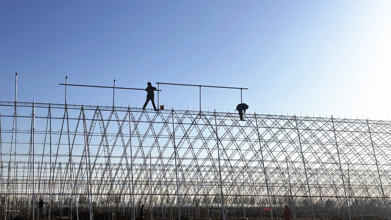 宁夏新闻网讯(记者 杨兆莲)机器轰鸣,焊花飞溅。近日,在灵武市东塔镇果园村余家蒲滩子的一片704.62亩的土地上,数十栋温棚的钢结构骨架已拔地而起。