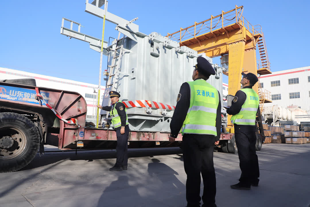 宁夏新闻网讯(记者 胡俊 文/图/视频)“您好,我们是宁夏交通运输厅执法监督局银川分局执法六大队工作人员,现在按照相关规定对您的大件运输车辆进行勘验。”11月25日,在卧龙电气银川变压器有限公司,执法人员手持勘验设备,一边检查测量大件运输车辆的装载情况,一边向司机讲解政策,以便企业尽快将装载的变压器合法合规运往目的地。