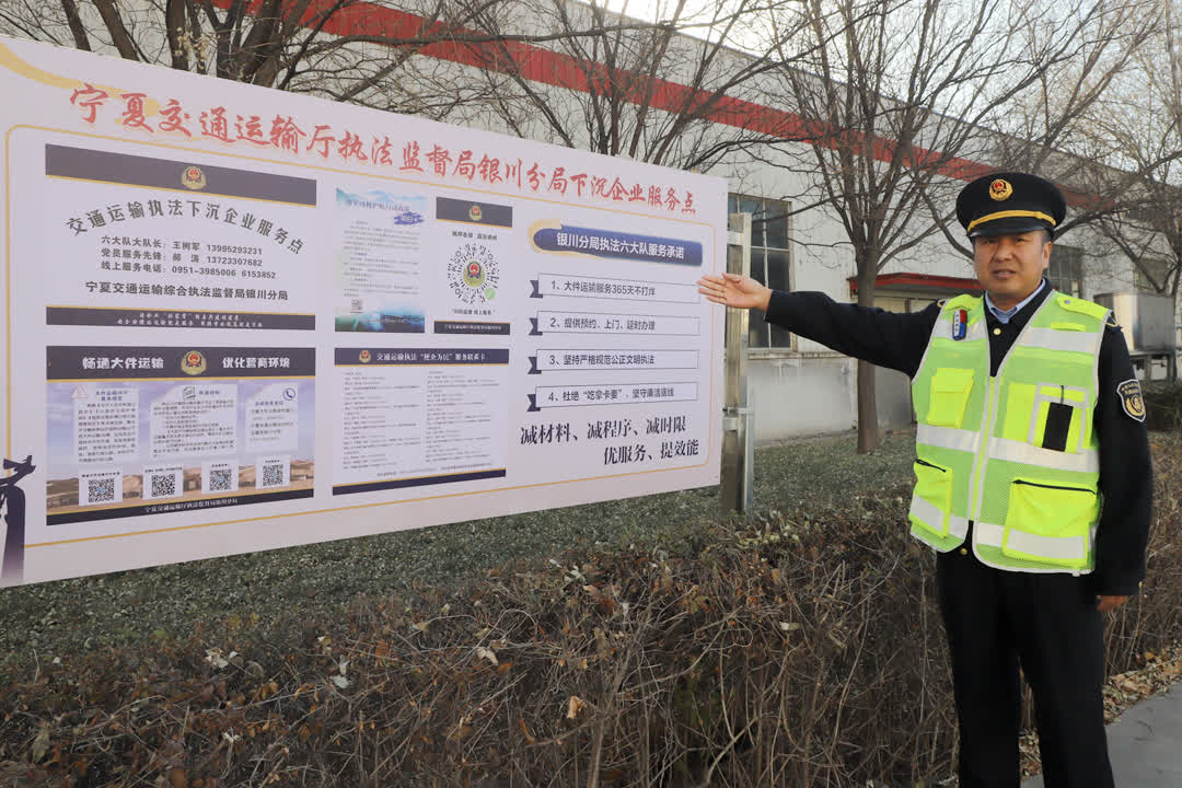 宁夏交通运输厅执法监督局银川分局执法六大队大队长王树军介绍,大队严格落实包容审慎执法工作,促进交通运输企业健康发展二十条硬措施及交通执法领域“助企为民”十件实事落地。进企业“拉家常”,指定1名党员服务先锋,开展“一对一”联络服务。建立“先送法、后帮扶、再执法”的柔性执法和入企帮扶工作机制,为企业高质量发展保驾护航。
