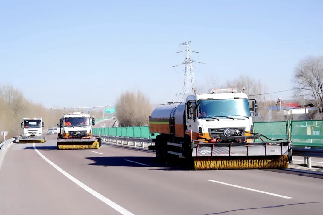 演练现场,指挥长一声令下,除雪作业车辆及保障车辆迅速集结于隆德、固原北、海兴等点位,推雪铲、撒布机等专业设备按照“先主路后匝道、先桥梁后路面”原则梯队作业,精准撒布融雪剂,流程规范高效。交通疏导组同步设置警示标志、引导车辆减速避让,设备保障组全程跟进排查故障,确保作业安全与设备稳定运行。各工作组密切配合、反应迅速,充分展现了过硬的专业素养和协同作战能力。