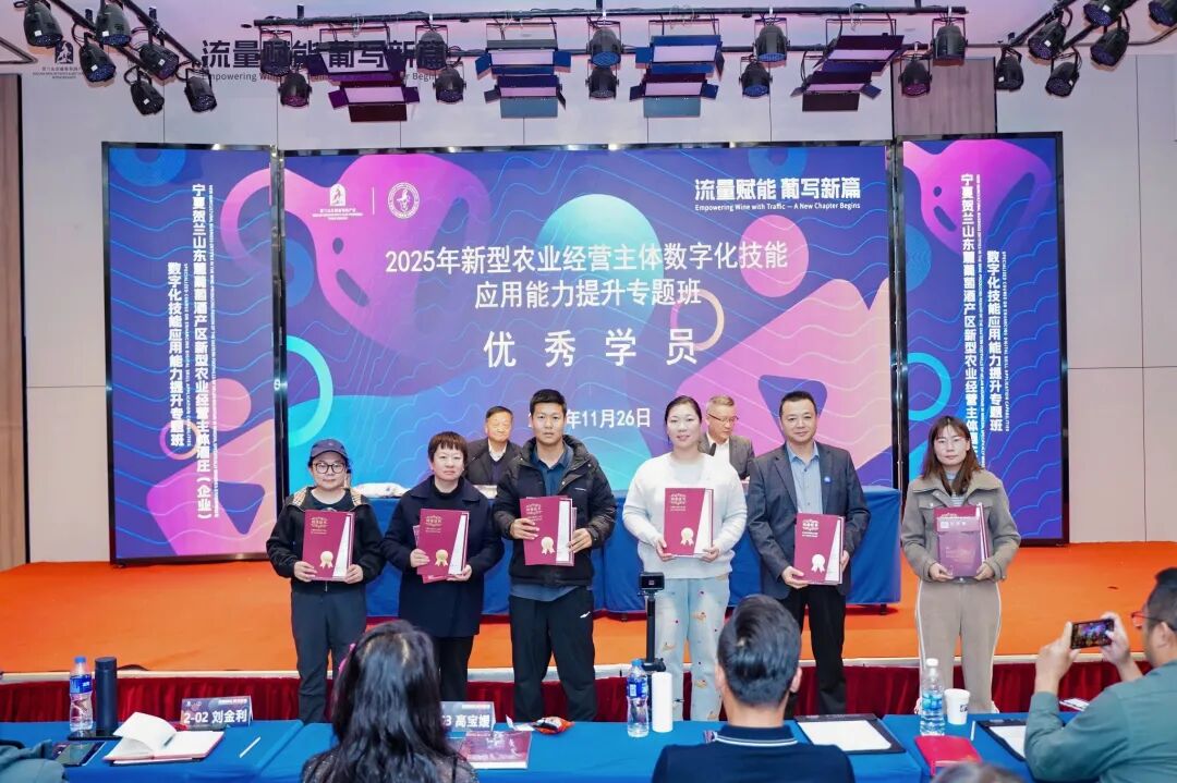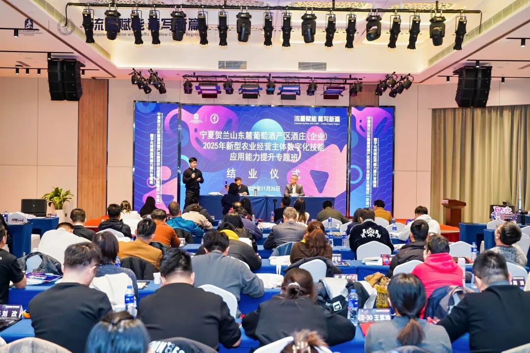 宁夏新闻网讯(记者 杨泠然 文/图/视频)11月26日,2025年宁夏贺兰山东麓葡萄酒产区新型农业经营主体酒庄(企业)数字化技能应用能力提升专题班暨第九期“贺兰山东麓葡萄酒大讲堂”在银川圆满落幕。为期6天的集中培训,以“理论+实操”的模式为177名来自产区各市县区的产业主管部门技术骨干、酒庄负责人及品牌营销、电商运营精英们送上“数字化营销工具箱”,助力产区葡萄酒产业突破地域限制,在电商赛道开辟发展新蓝海。