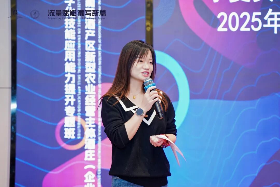 结业仪式上,组委会对8名优秀学员、6名全勤星光奖获得者、6名课堂互动奖获得者及3个优秀团队进行了表彰,两位学员代表分享了学习心得。蒲尚酒庄姜婧作为酿酒师兼酒庄负责人,坦言此前对电商“又渴望又迷茫”,曾花费重金聘请外部团队却收效甚微,而本次培训让她理清了运营思路:“老师手把手教我们搭建直播间、做数据复盘,现在终于知道怎么把多年酿的好酒通过线上送进更多消费者手里。”引发在场学员强烈共鸣。