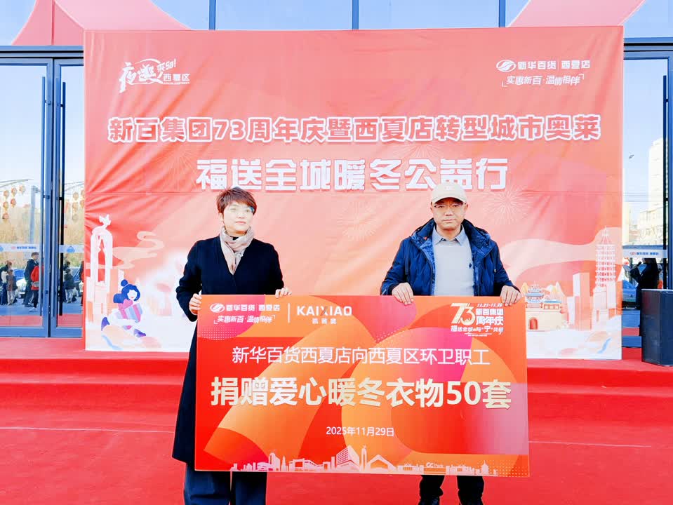 在推进商业升级的同时,西夏店积极履行社会责任,正式启动“福送全城暖冬公益行”活动,新华百货西夏店向西夏区环卫职工捐赠爱心暖冬衣物50套,以实际行动致敬城市守护者。多年来,西夏店持续开展旧物回收、公益捐赠与社区帮扶等行动,不断传递“顾客至上、责任担当”的企业价值观。